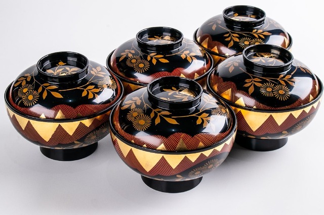 輪島塗 菊模様 時代椀 煮物椀 5客 共箱 F234