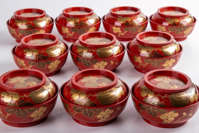 朱塗刷毛目 瓜蒔絵煮物椀 菓子椀 10客 F282 バラ売り可能です