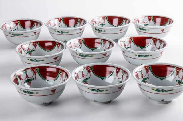 寺前瑛生 九谷赤絵汲み出し碗 10客 F271D