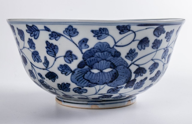 正木春蔵 染付牡丹文鉢 径22cm 共箱 F302