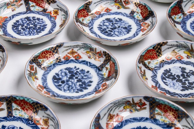 古伊万里 金襴手牡丹鳳凰文四寸皿 10客 明治時代 E2000C バラ売り可能です