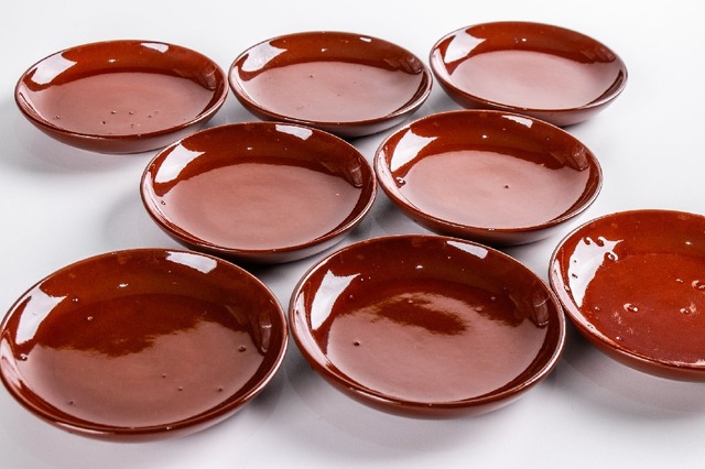 淡路民平焼 飴釉小皿 豆皿 8客 E2273B