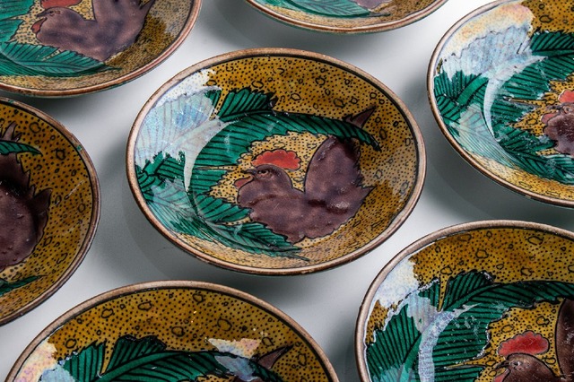 九谷 青手芭蕉鶏文小皿 9客 E2105A バラ売り可能です