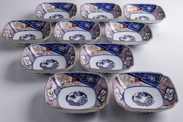 大聖寺伊万里 花鳥文角鉢 10客 明治時代 E2137A2 バラ売り可能です
