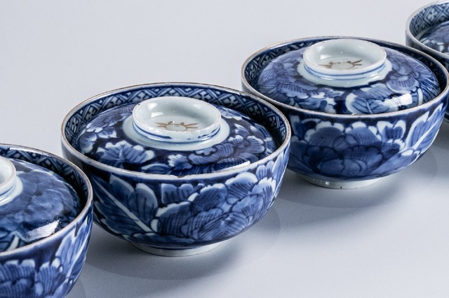 古伊万里 染付牡丹文蓋茶碗 5客 江戸後期 E223 バラ売り可能です