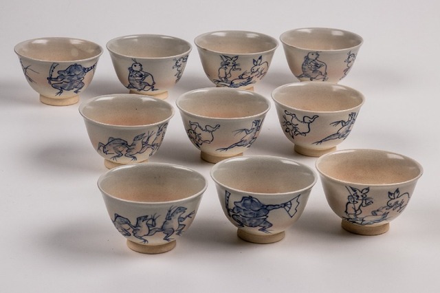 竜谷窯 宮川香雲 鳥羽絵 汲出茶碗 10客 共箱 F274