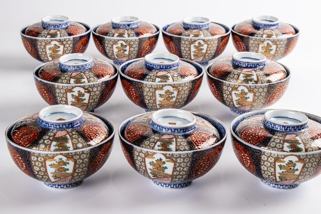 古伊万里 錦桐葉鳳凰文蓋茶碗 11客 明治時代 E1963D バラ売り可能です