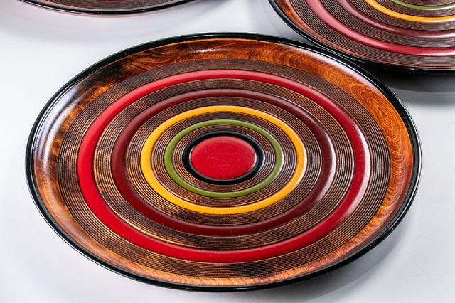 【うつわ】 讃岐彫刻 独楽塗 丸盆 径45cm 3客 D770 バラ売り可能です