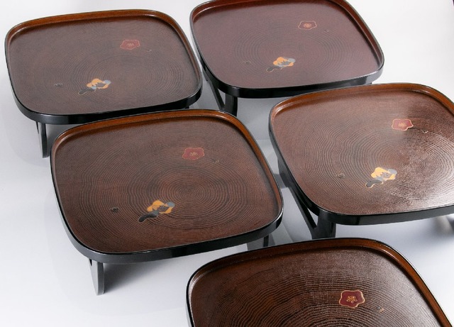 【うつわ】 輪島塗 木目梅花蒔絵 懐石膳 5客 箱付 E584A バラ売り可能です