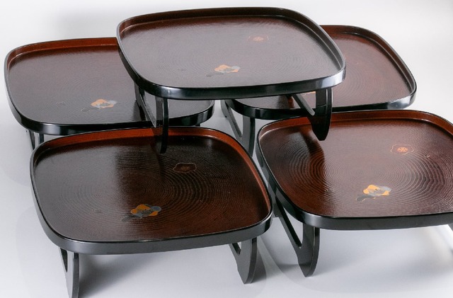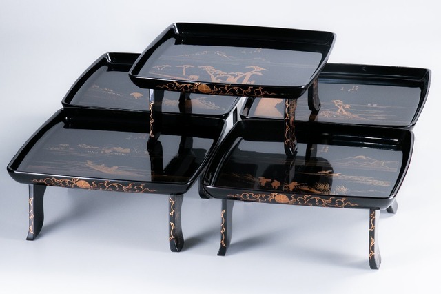 輪島塗 紗張り 卓上膳 5客 共箱 E1662