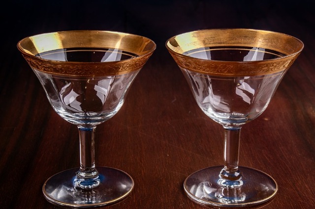 アンティーク フランス 金彩グラス クープグラス 2客 高さ10.7cm E2110D