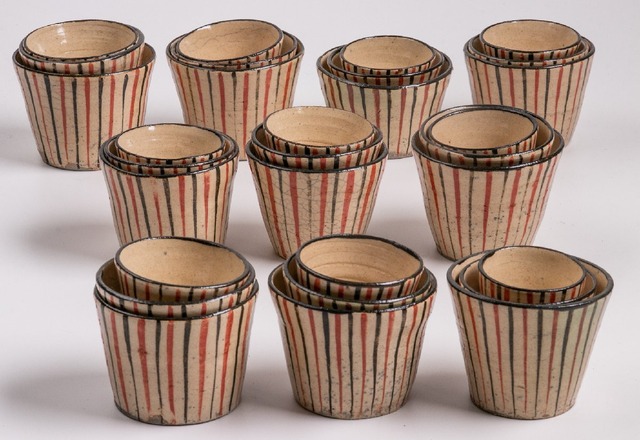 【うつわ】 瀬戸 麦藁手 三ツ入猪口 10客 E957