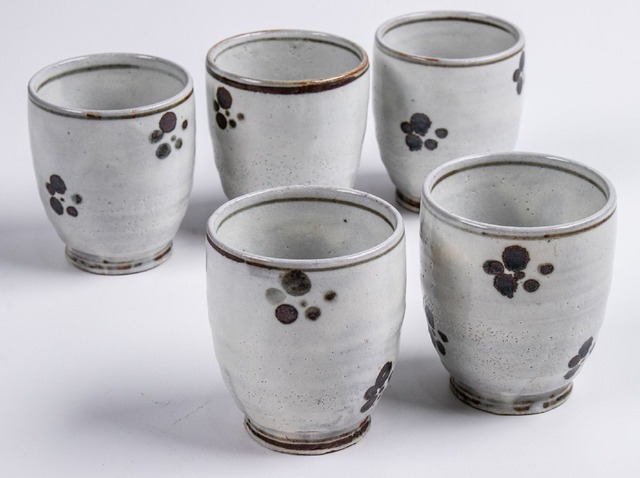 虎渓山 水月窯 粉吹風 湯呑 5客 共箱 E1397