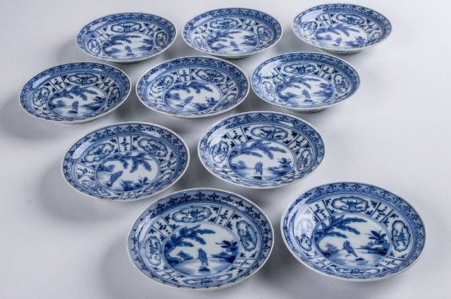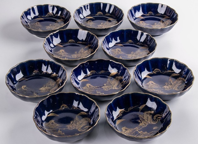 古伊万里 瑠璃釉金彩山水文なます皿 10客 明治時代 F175C バラ売り可能です
