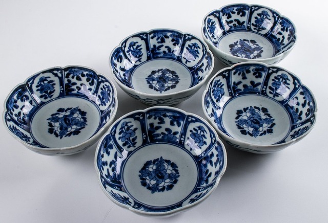 古伊万里 染付牡丹文蓋茶碗 5客 江戸後期 E223 バラ売り可能です