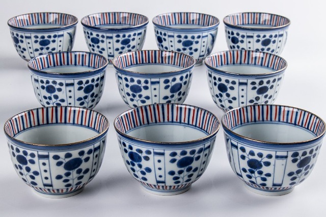 古伊万里 染錦草花文碗 10客 明治時代 E2289A バラ売り可能です