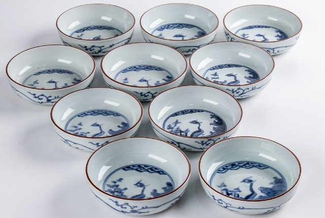 古伊万里 染付芙蓉手花鳥文小皿 10客 明治時代 E2261 バラ売り可能です
