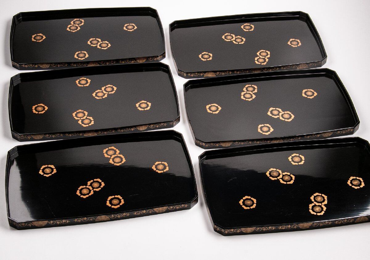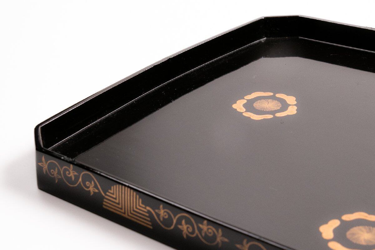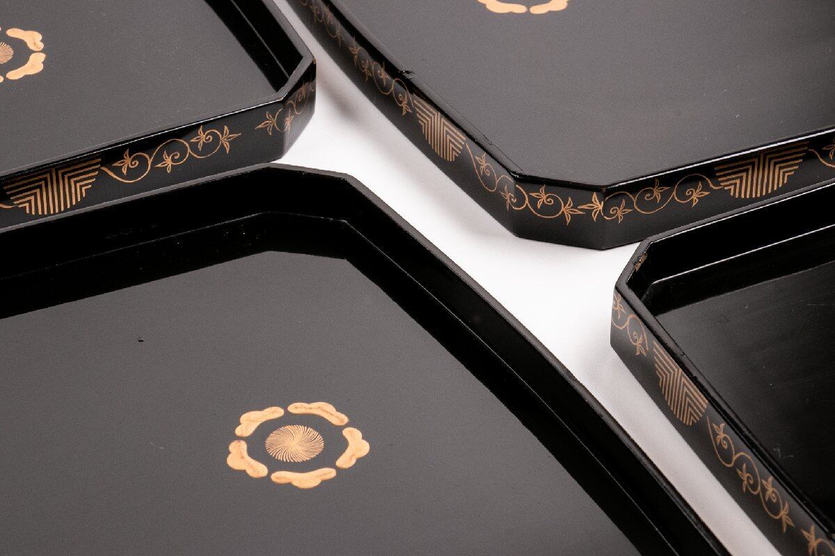 時代物 真塗梅花蒔絵隅切り脇引き盆 4客 E1603 バラ売り可能です
