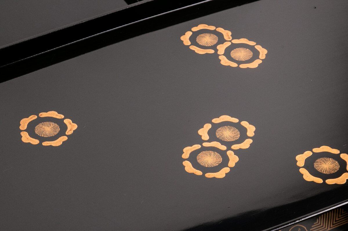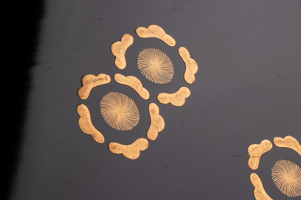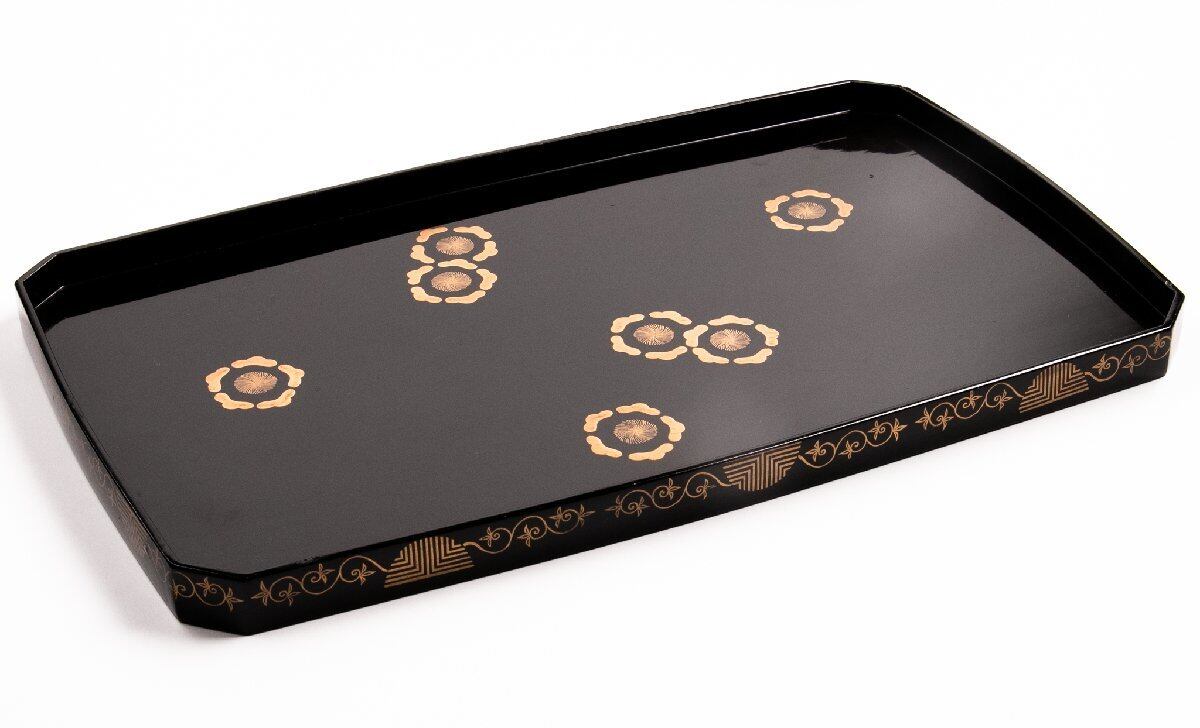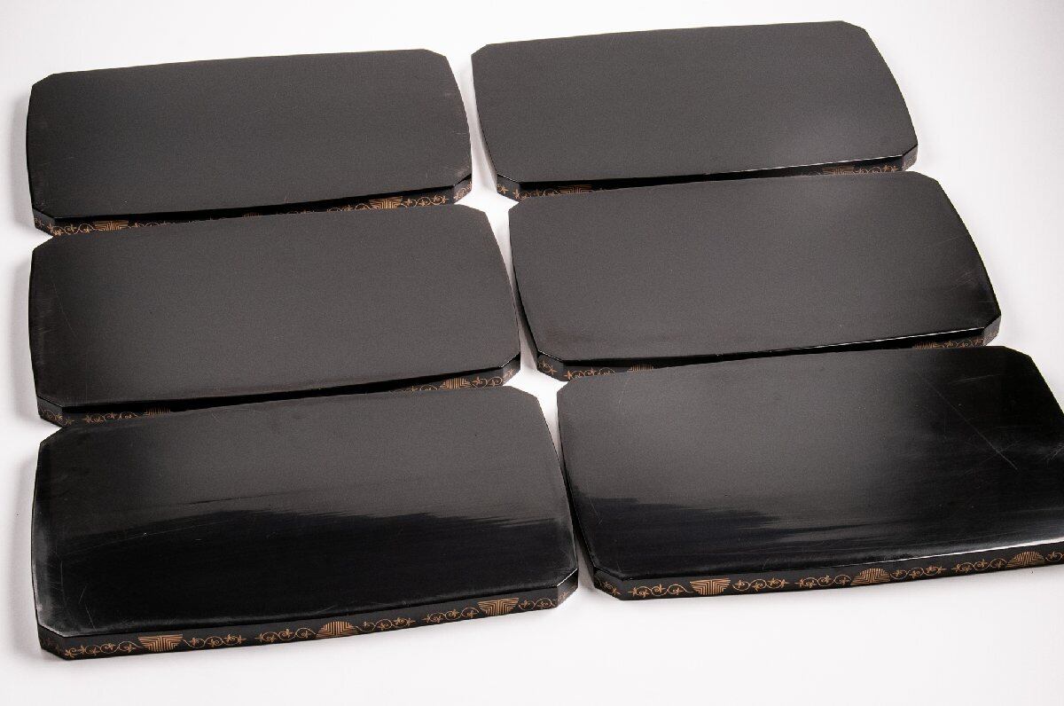 時代物 真塗梅花蒔絵隅切り脇引き盆 4客 E1603 バラ売り可能です