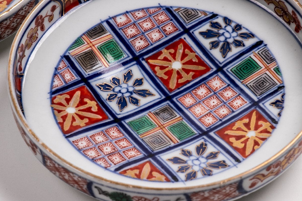 大聖寺伊万里 金襴手更紗文四寸皿 4客 明治時代 E1592A バラ売り可能です
