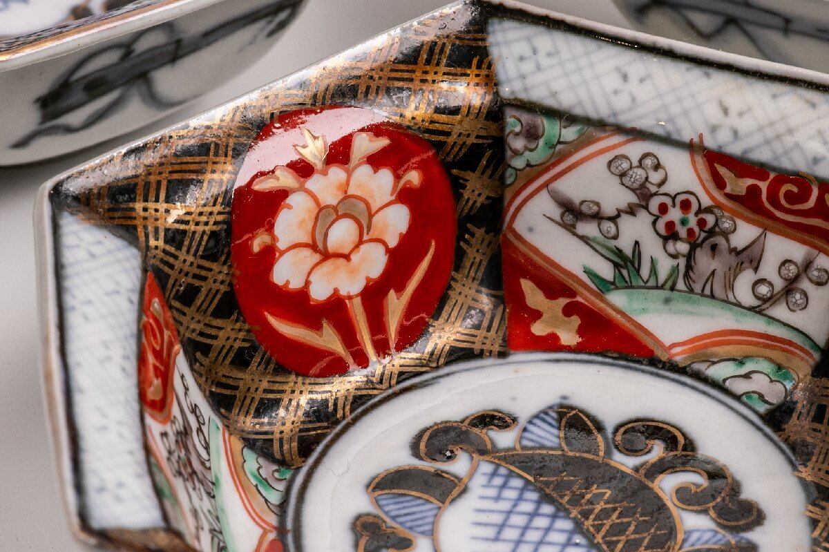 古伊万里 染錦草花蟠桃文六角鉢 10客 明治時代 E1794B バラ売り可能です