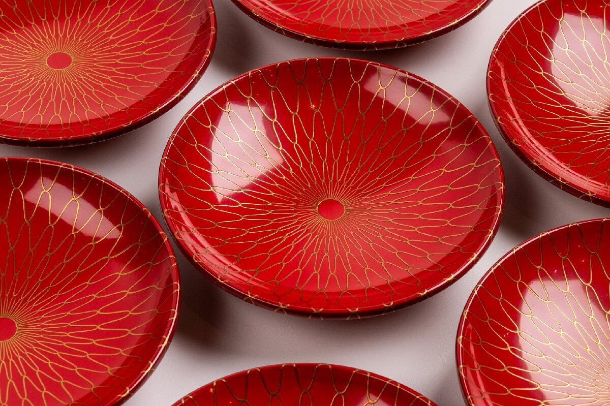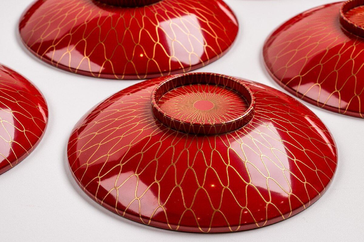 時代物 朱塗網絵蒔絵引き盃 10客 E1593B