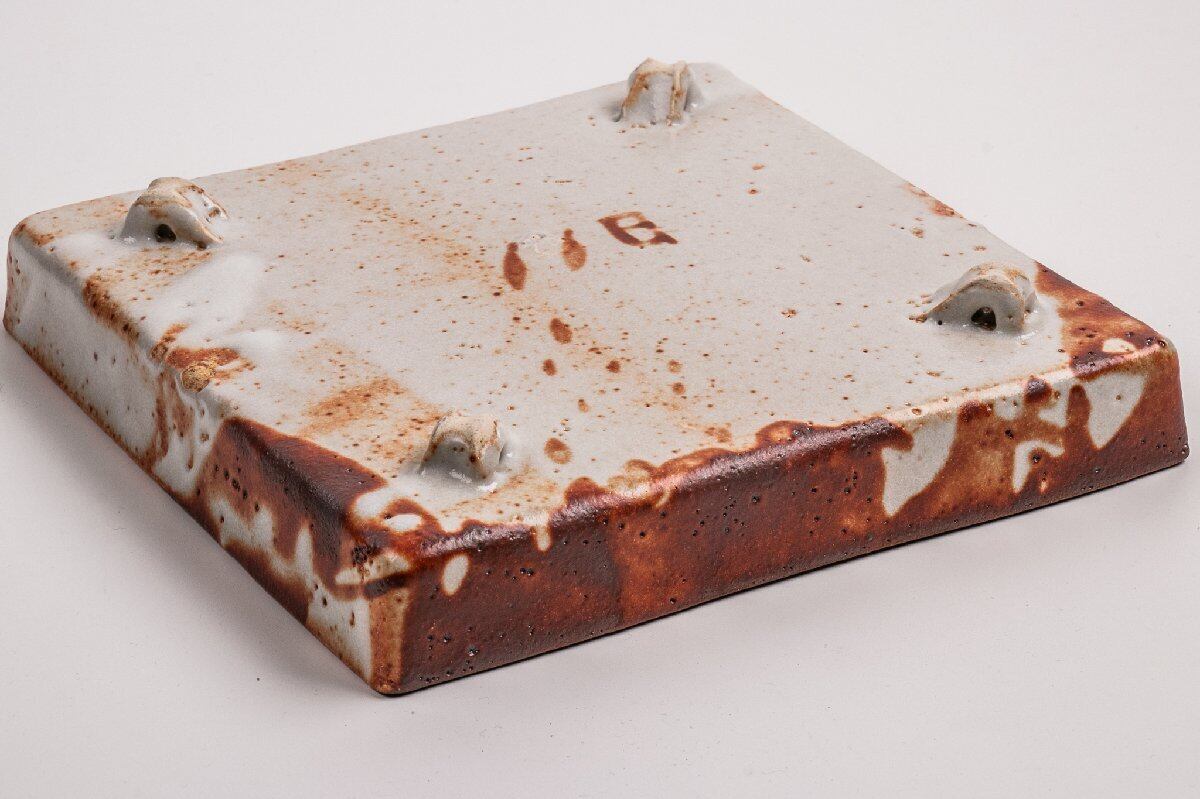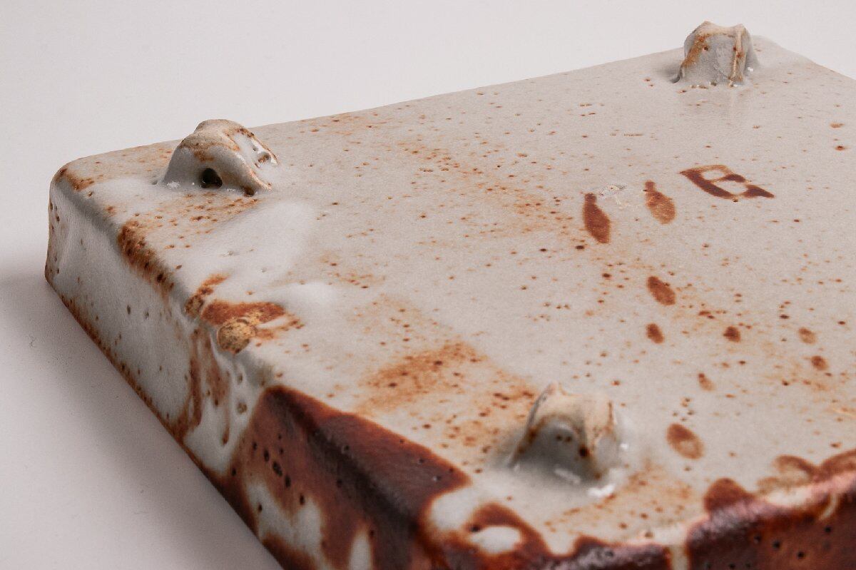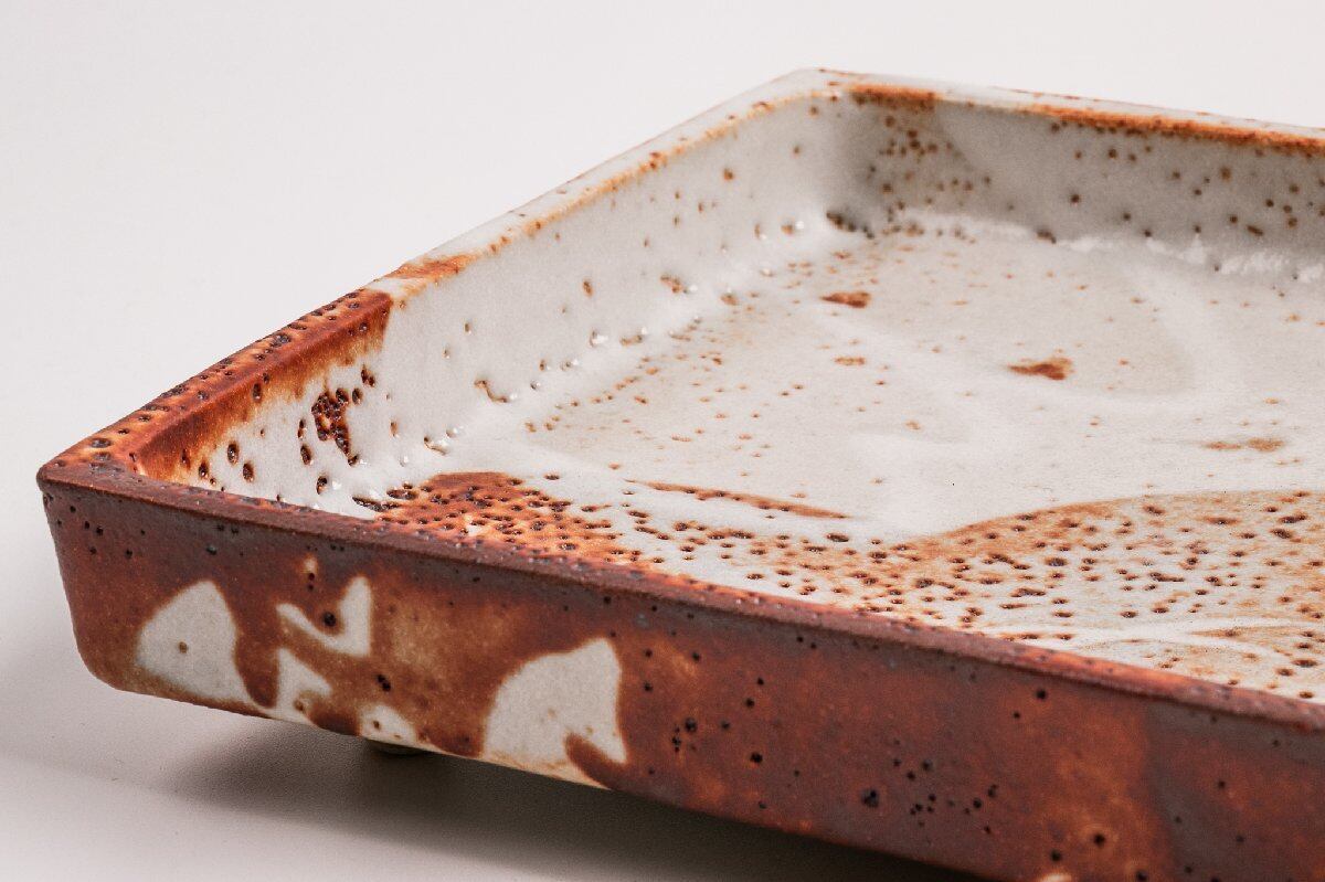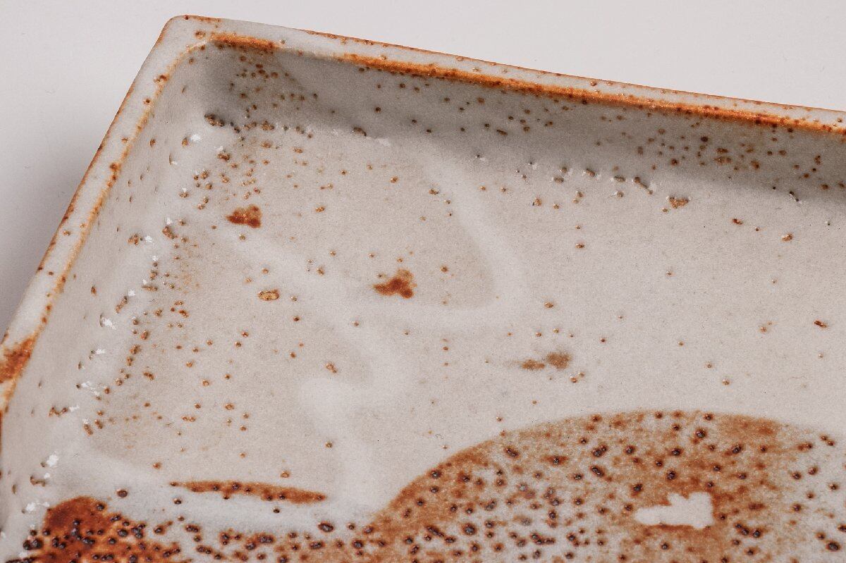 安藤日出武 志野 角鉢 角皿 共箱 E1625