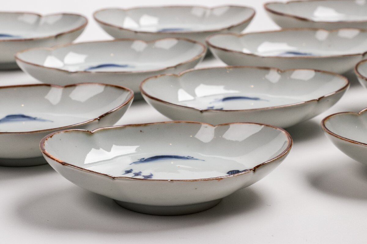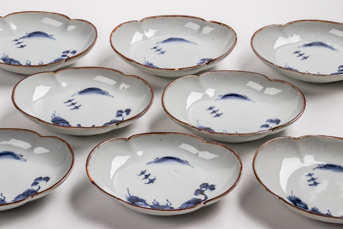 古伊万里 染付山水文木瓜形皿 7客 江戸中期 E1701B バラ売り可能です