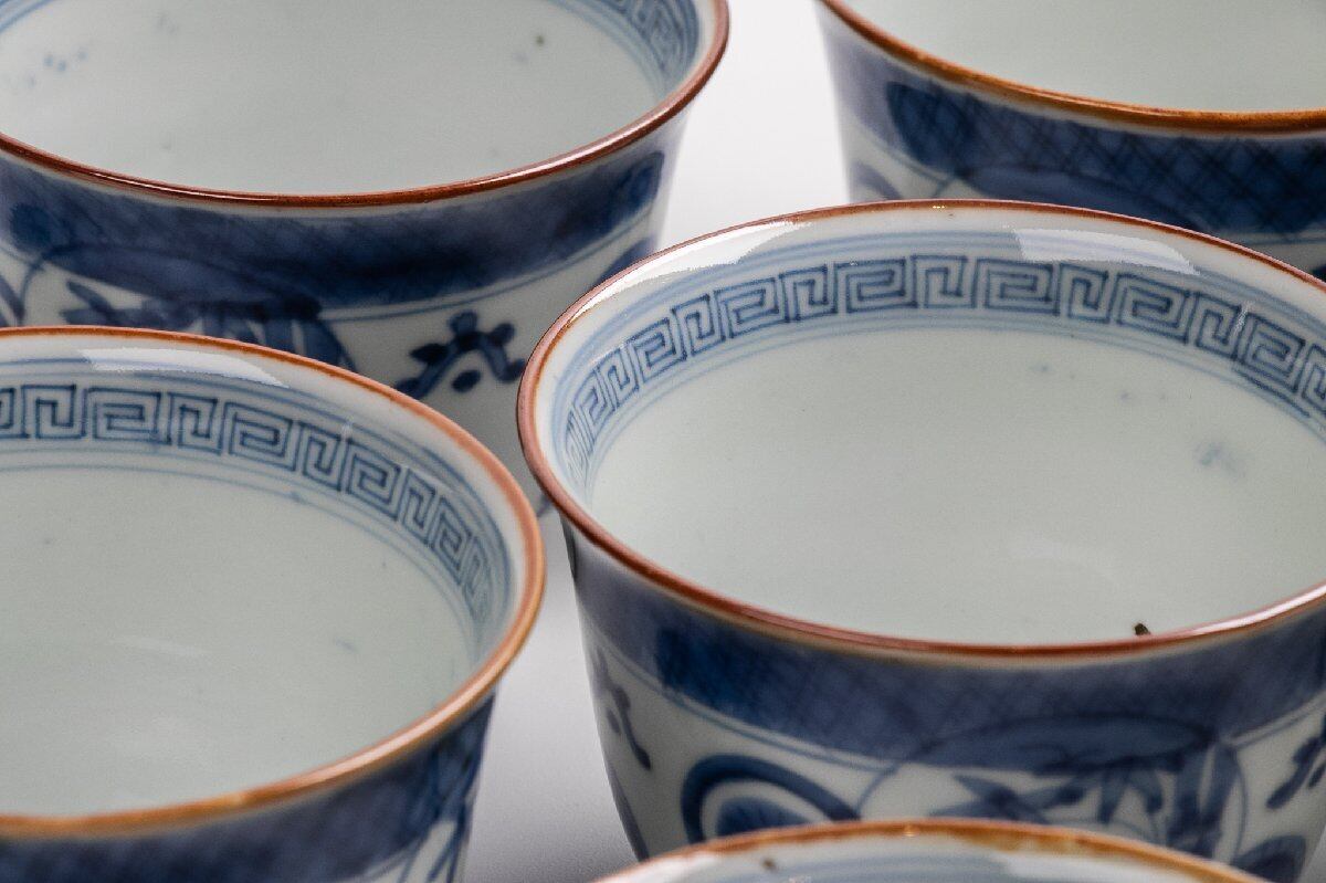 古伊万里 染付丸文松竹梅文碗 10客 明治時代 E1781A バラ売り可能です