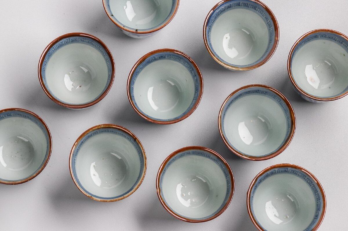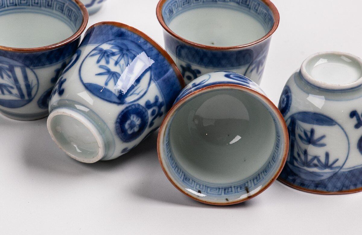 古伊万里 染付丸文松竹梅文猪口 8客 明治時代 E1360A バラ売り可能です