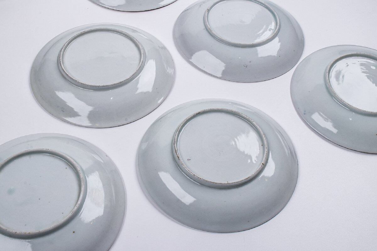 古伊万里 染付楼閣山水幾何学文六寸皿 10客 江戸後期 E1911B バラ売り可能です