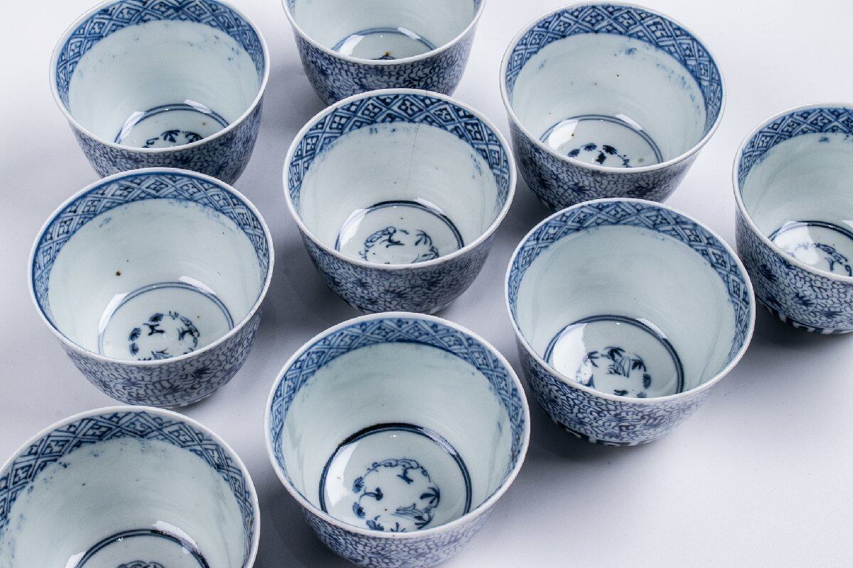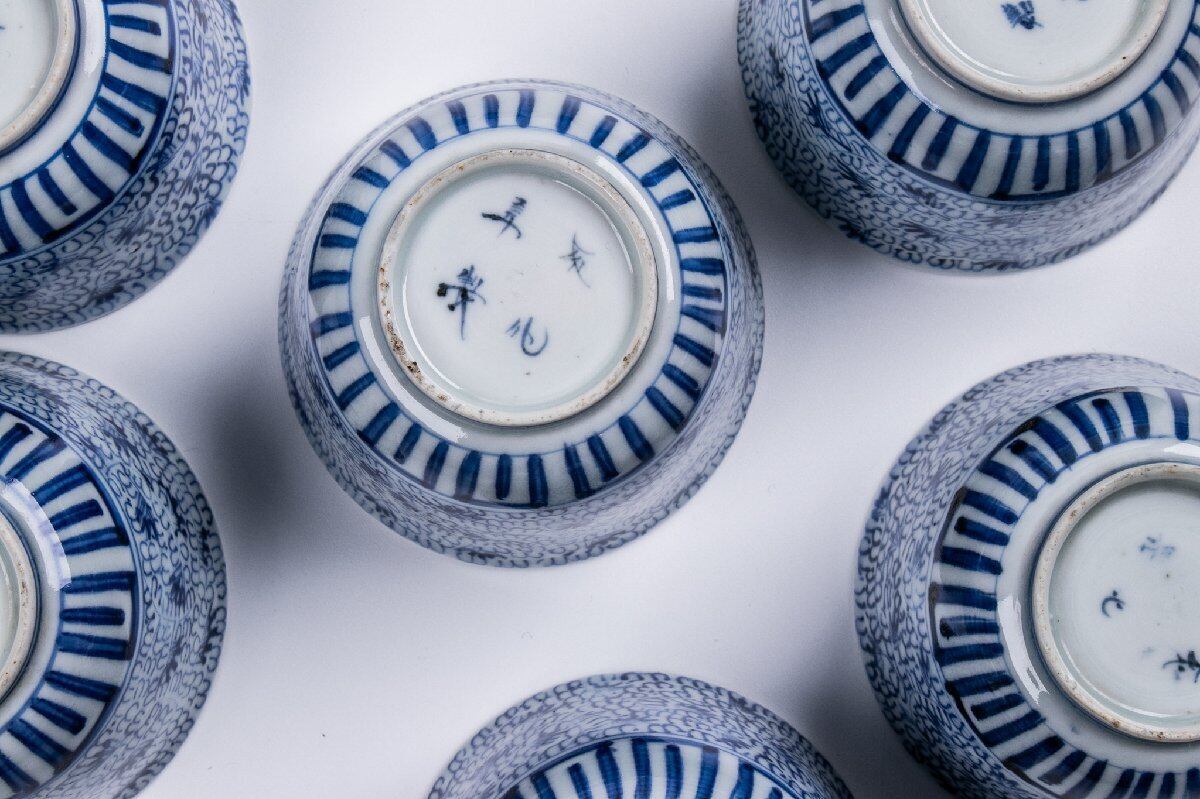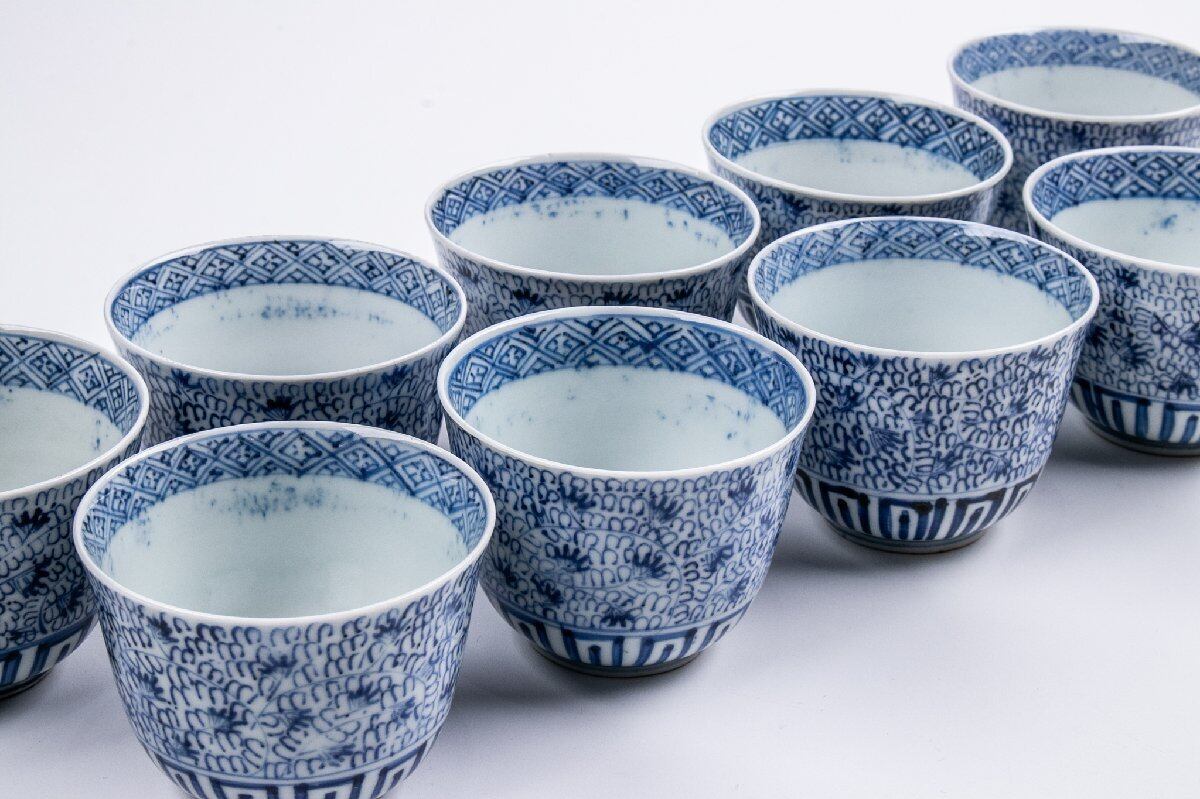 古伊万里 染付微塵唐草三友文向付 5客 江戸後期 E1912B バラ売り可能です