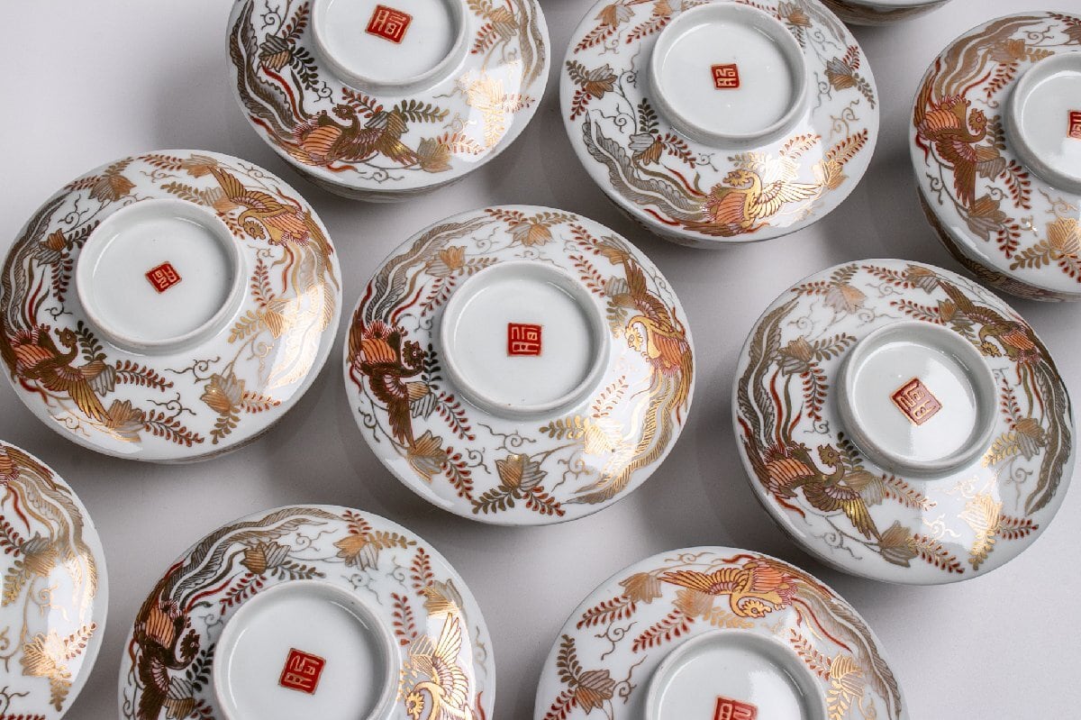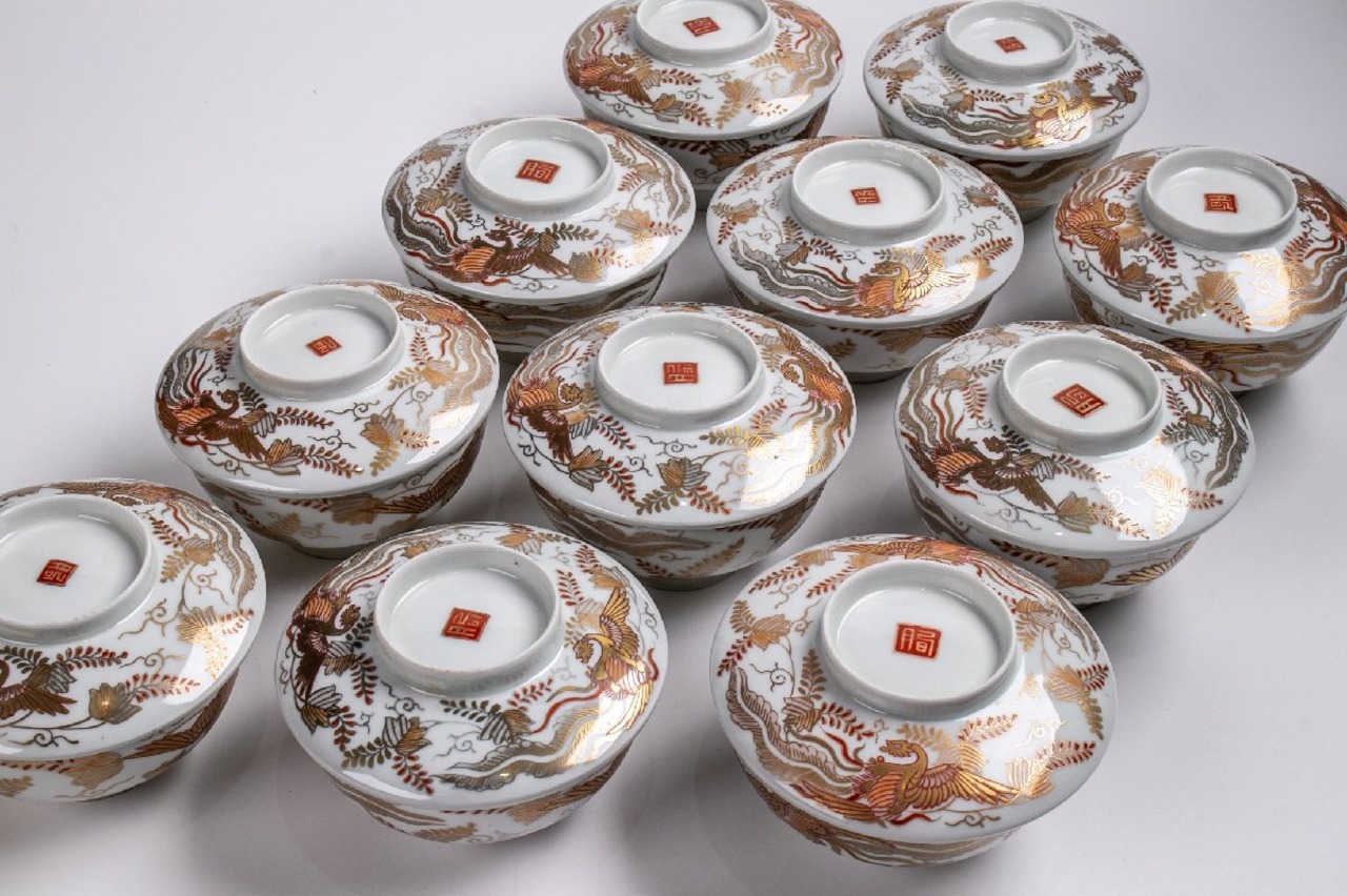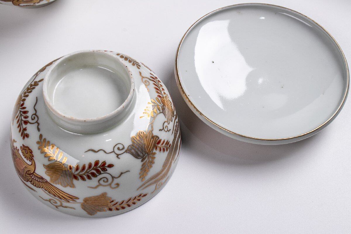 古伊万里 錦桐葉鳳凰文蓋茶碗 11客 明治時代 E1963D バラ売り可能です