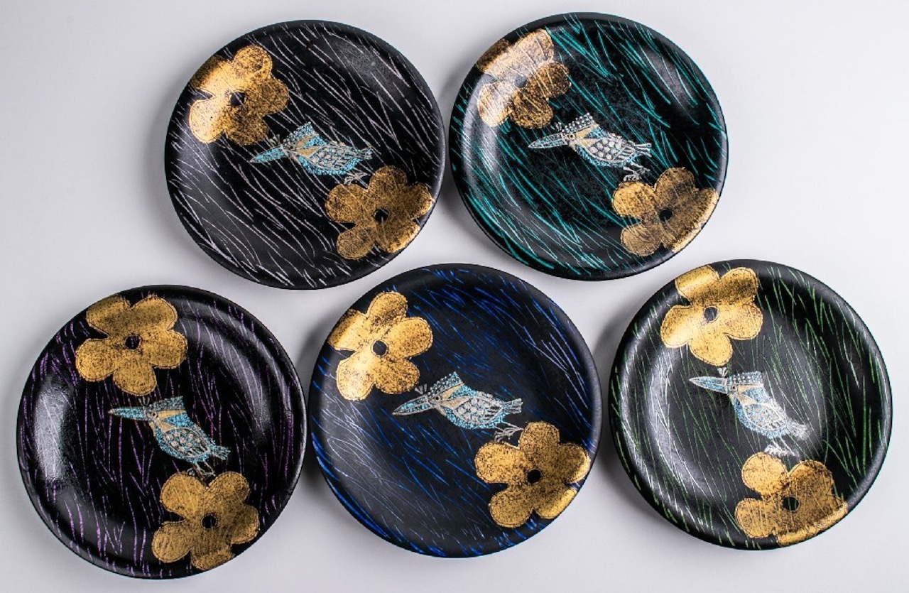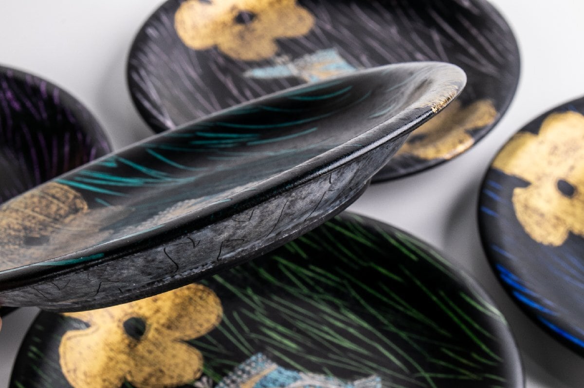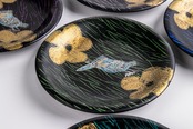 伊藤北斗 釉刻色絵金銀彩 組皿 5客 共箱 E2120