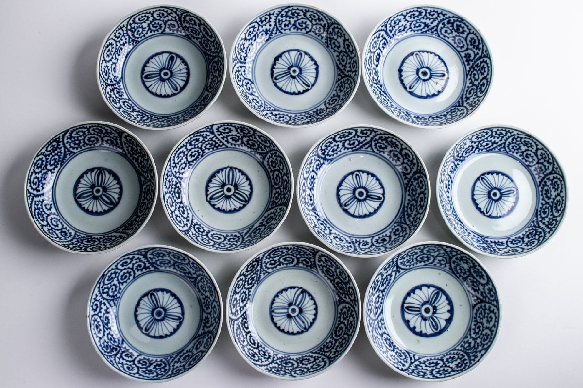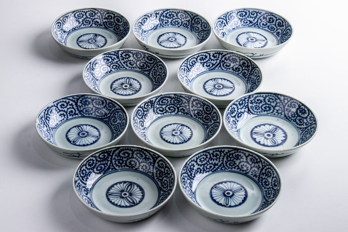 古伊万里 染付蛸唐草文なます皿 10客 江戸後期 E2131A バラ売り可能です