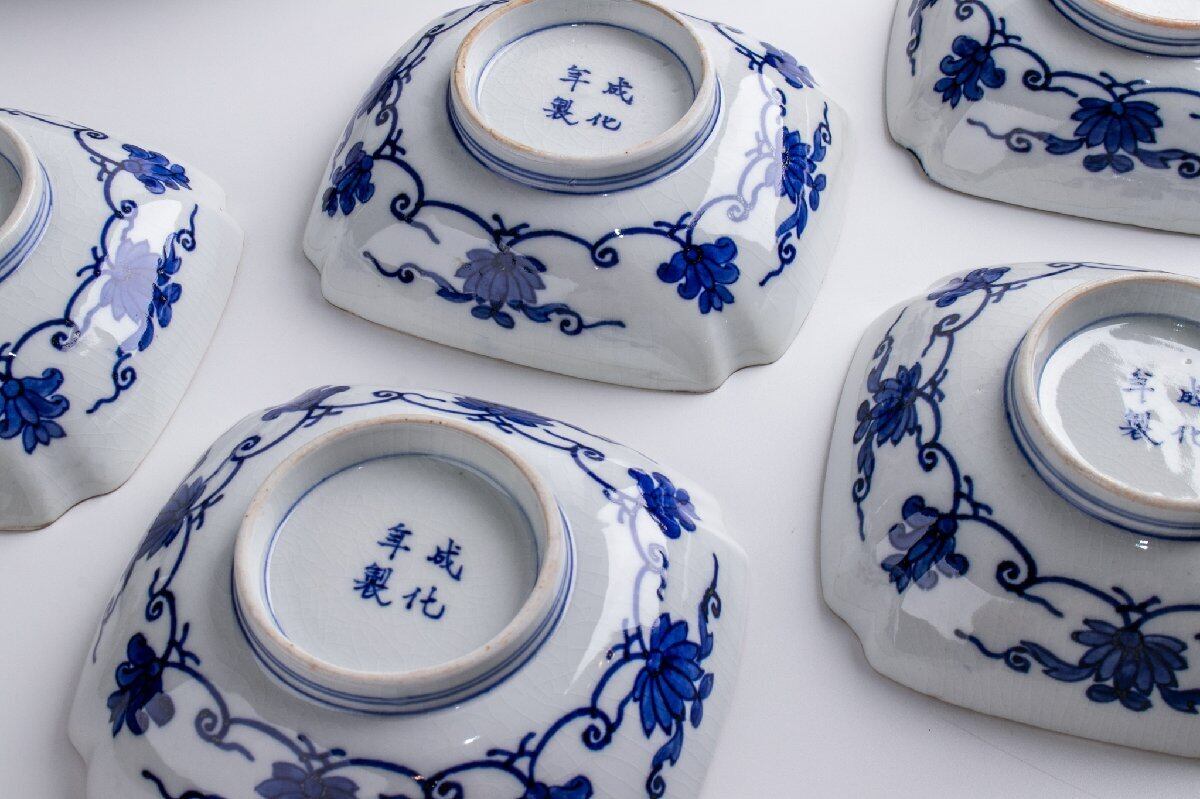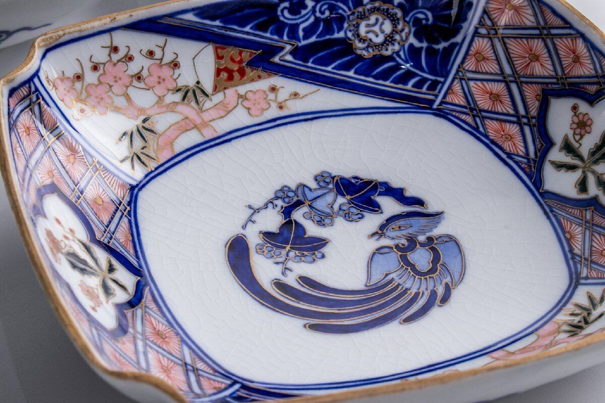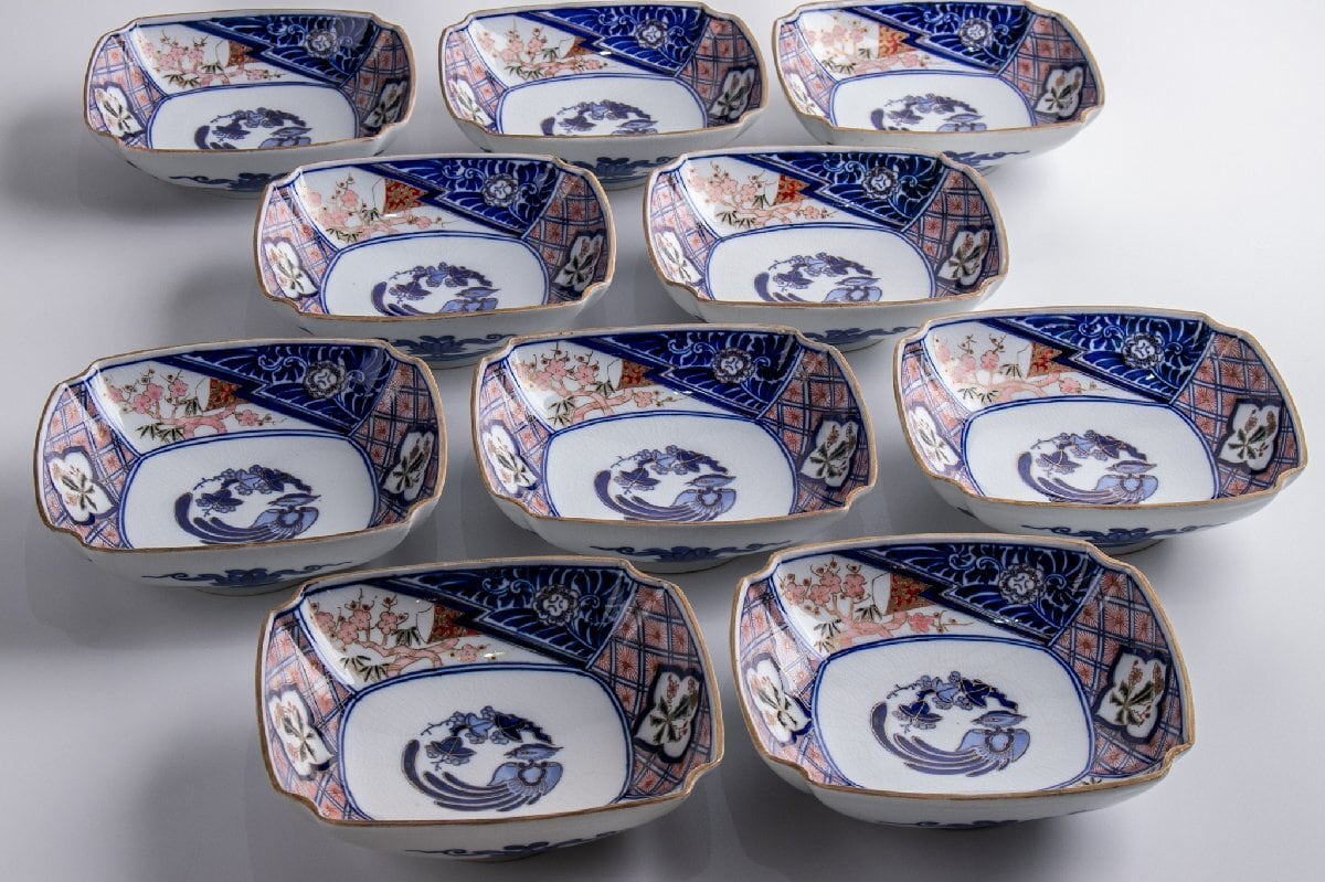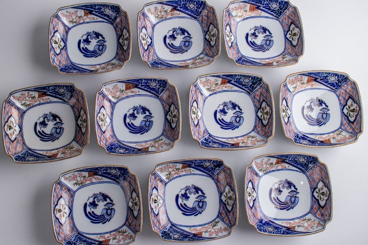 大聖寺伊万里 花鳥文角鉢 10客 明治時代 E2137A1 バラ売り可能です
