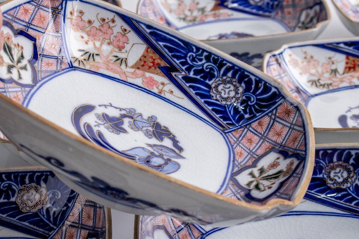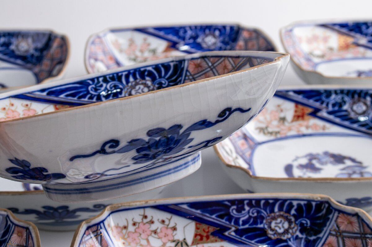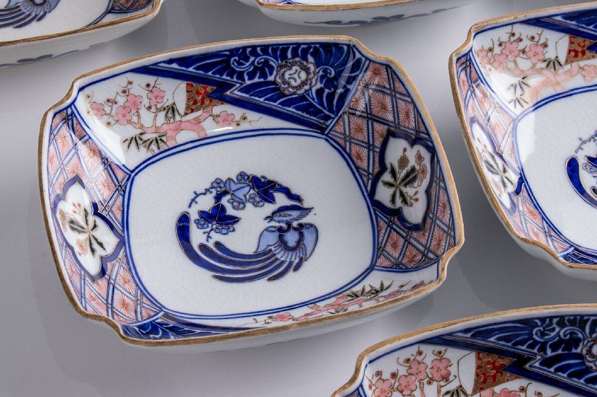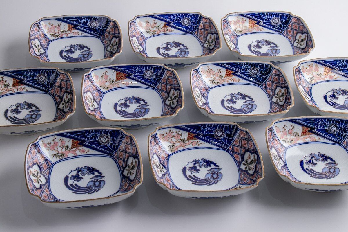 大聖寺伊万里 花鳥文角鉢 10客 明治時代 E2137A2 バラ売り可能です