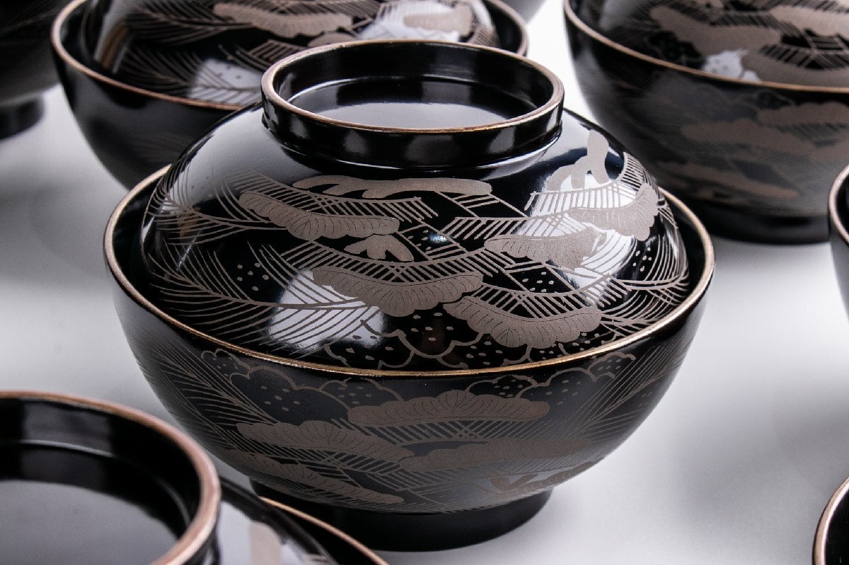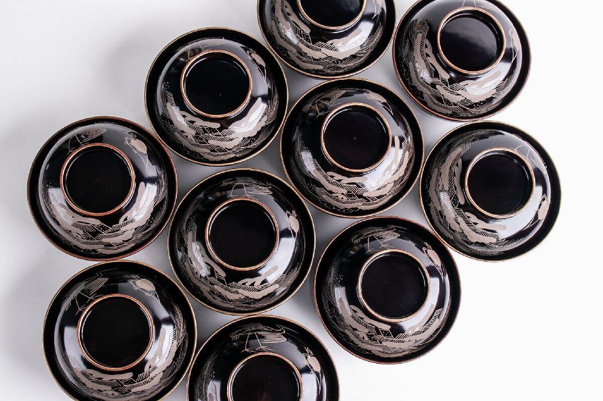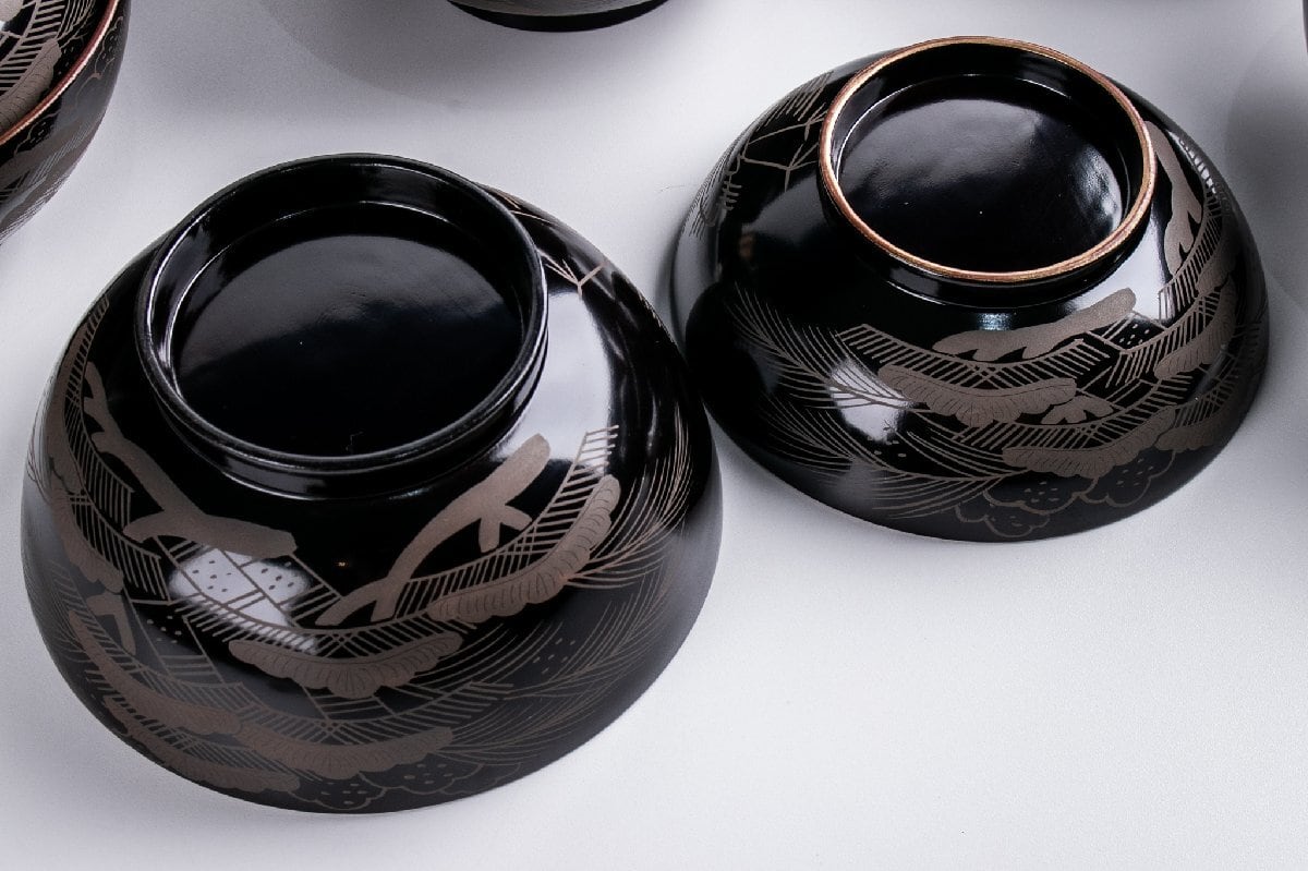 時代物 真塗鶴亀老松蒔絵煮物椀 5客 E2063B バラ売り可能です