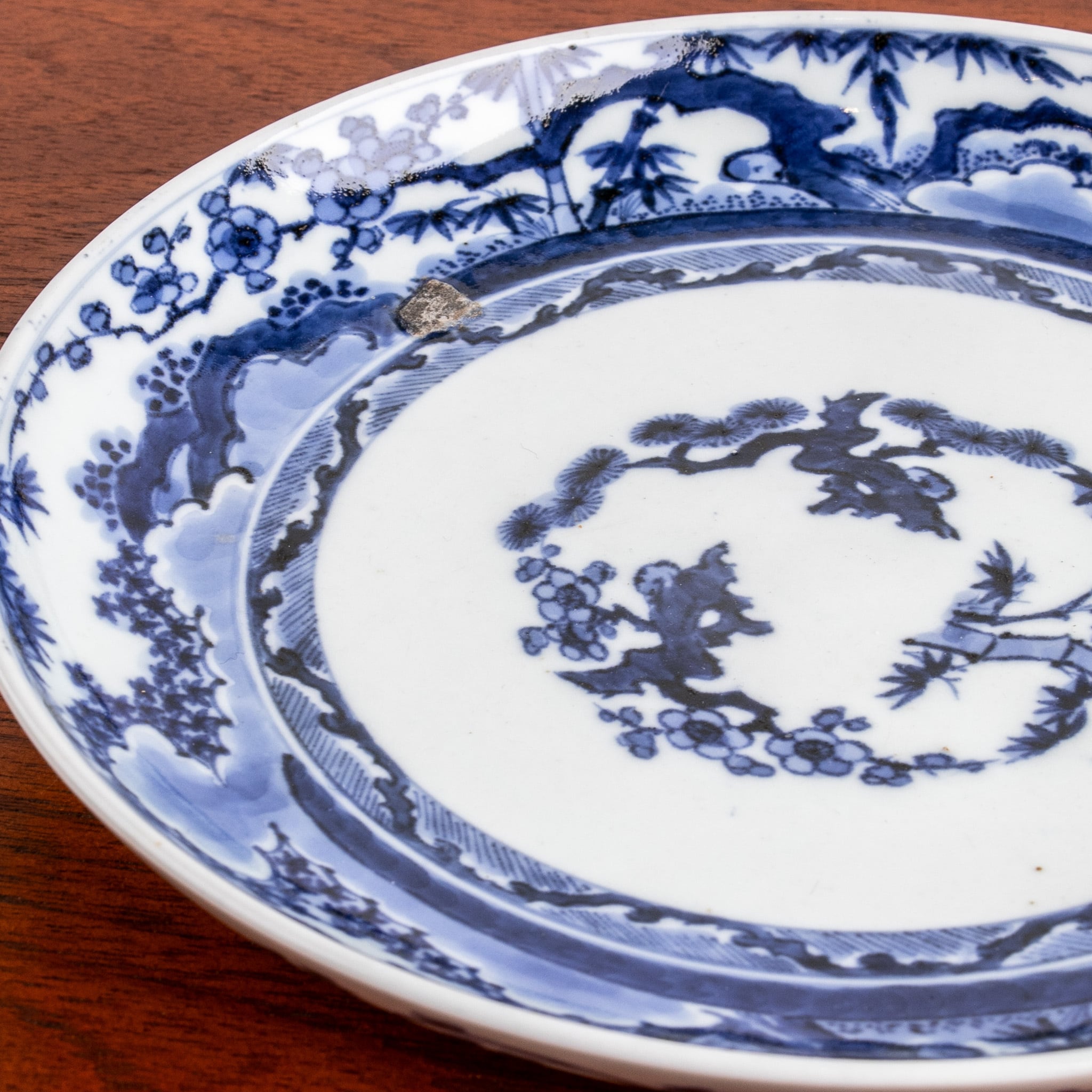 古伊万里 染付松竹梅文七寸皿 1客 江戸後期 E910