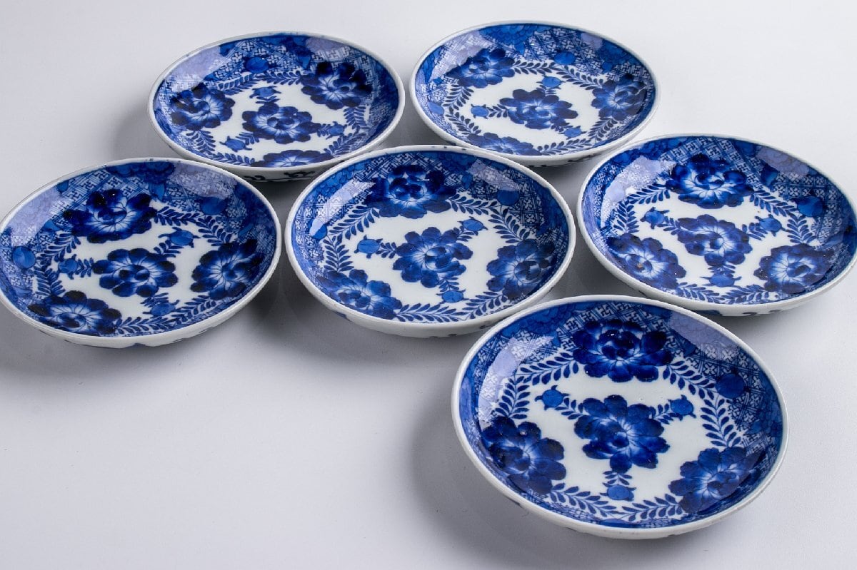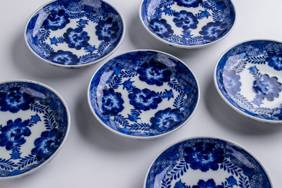古伊万里 染付牡丹文小皿 6客 明治時代 E2092C バラ売り可能です