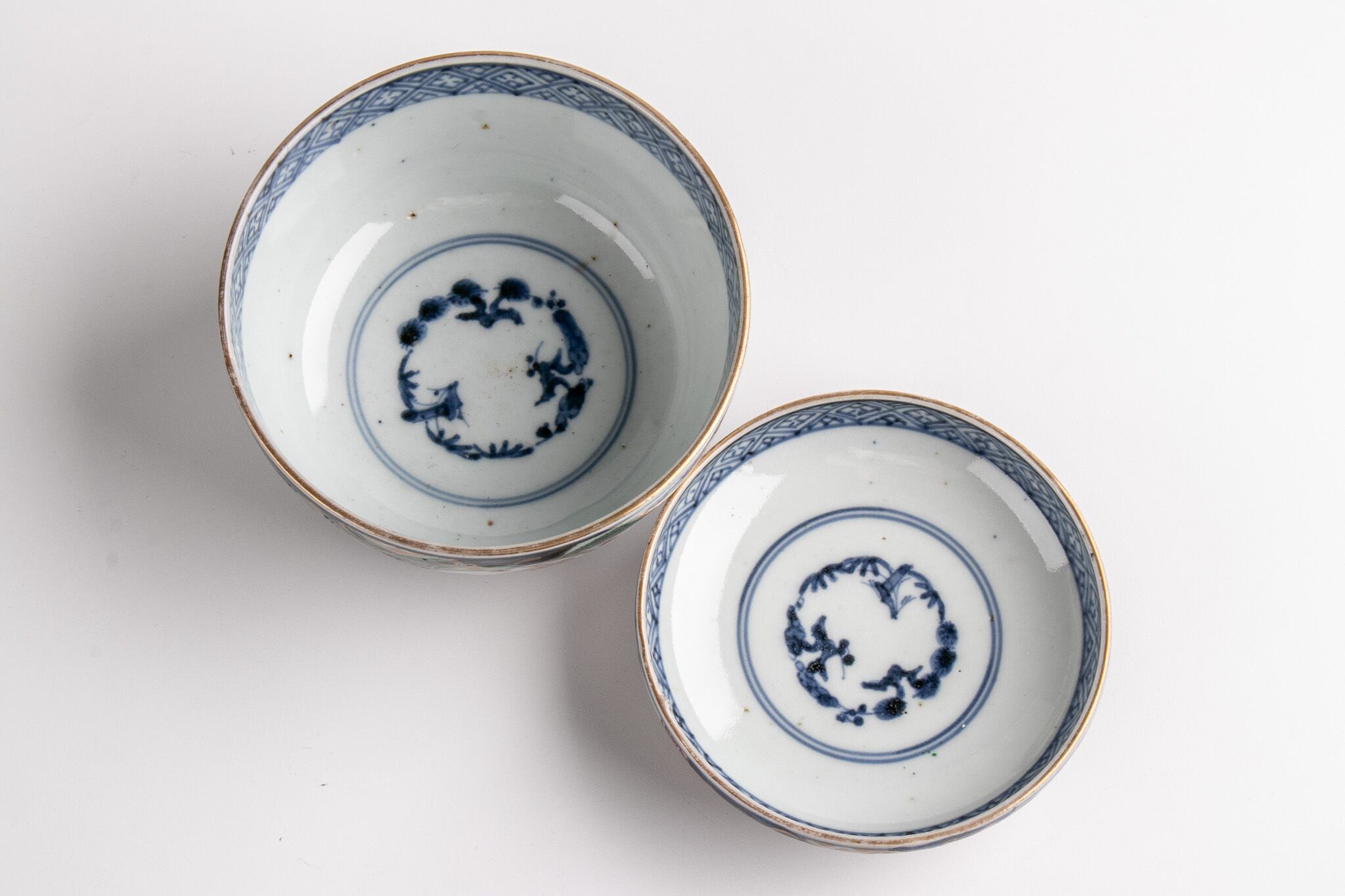 古伊万里 染錦 松竹梅七宝文 蓋茶碗 明治時代