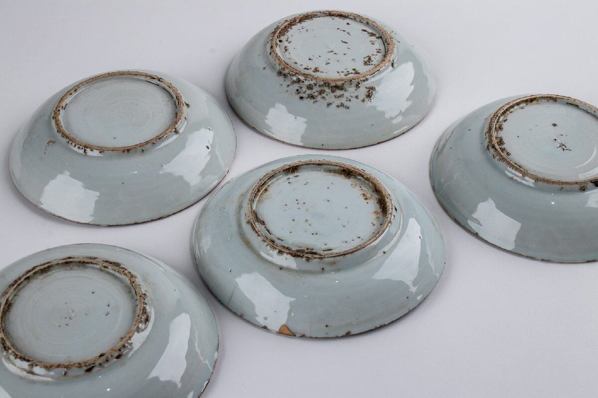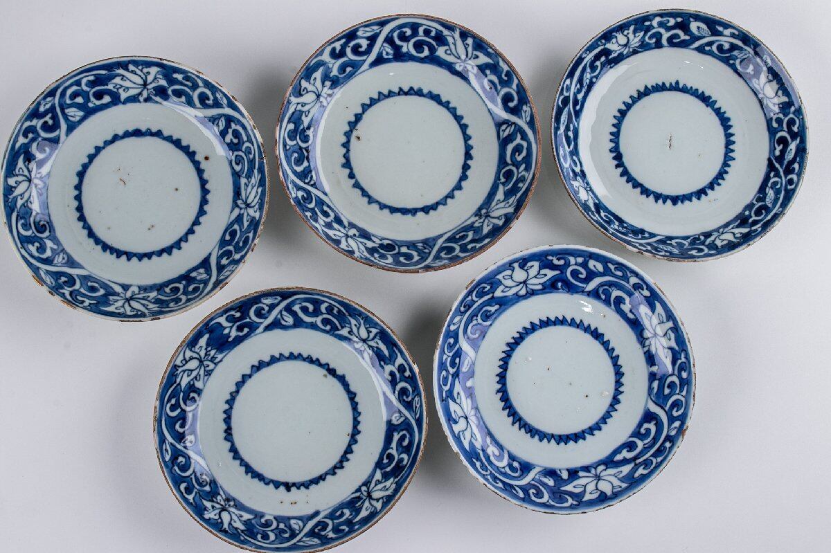 古染付 白抜き唐華文中皿 5客 明末~清初 E2098