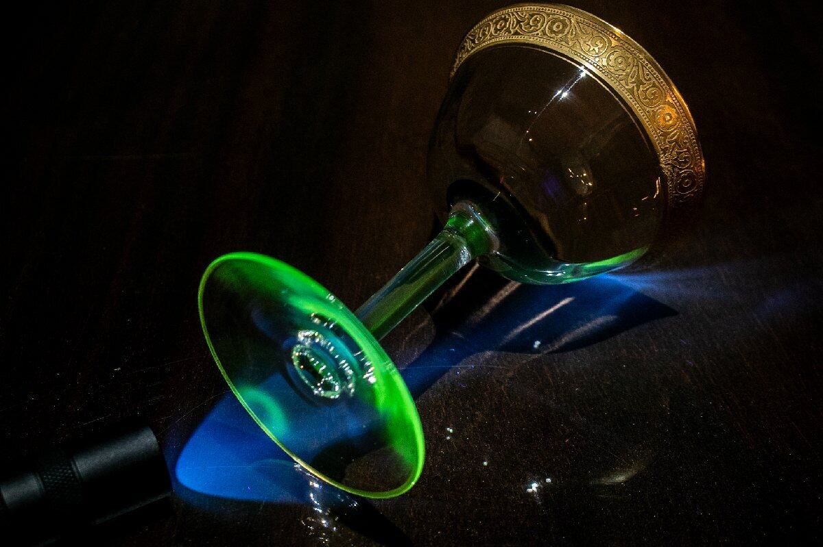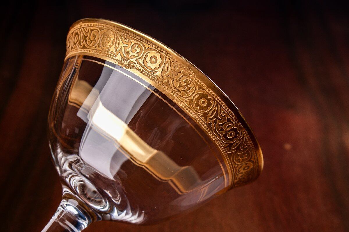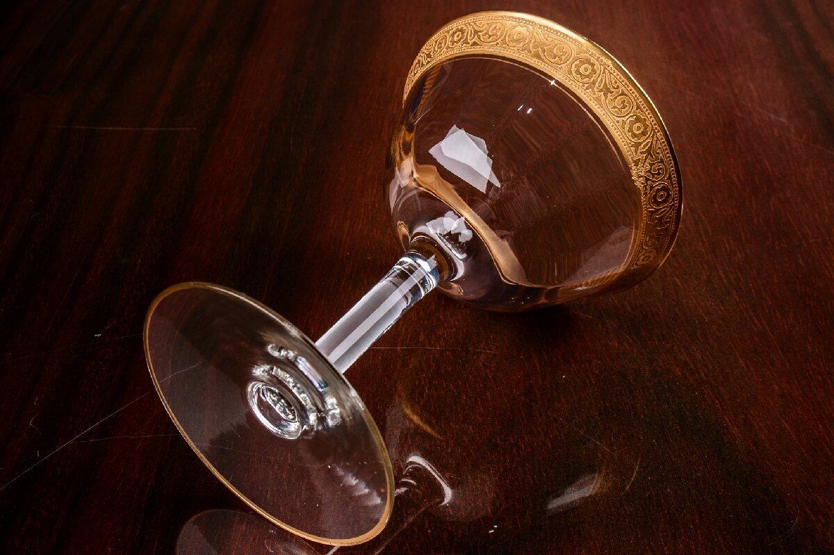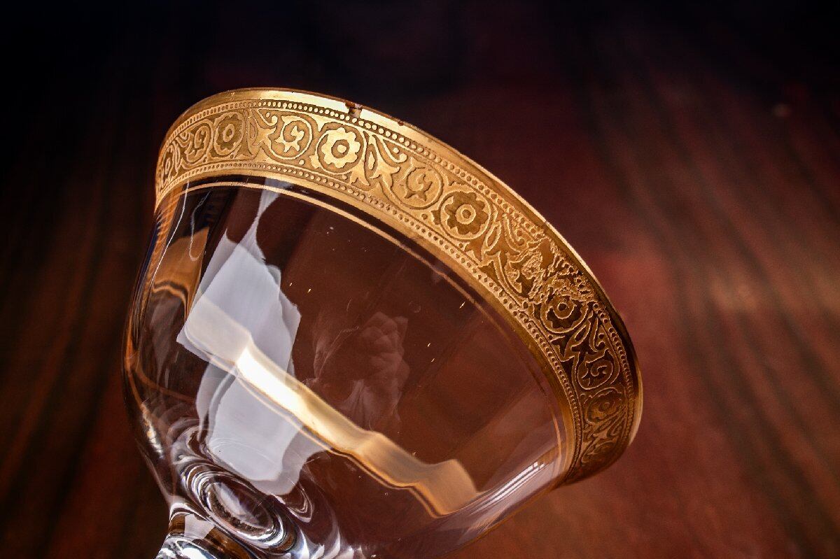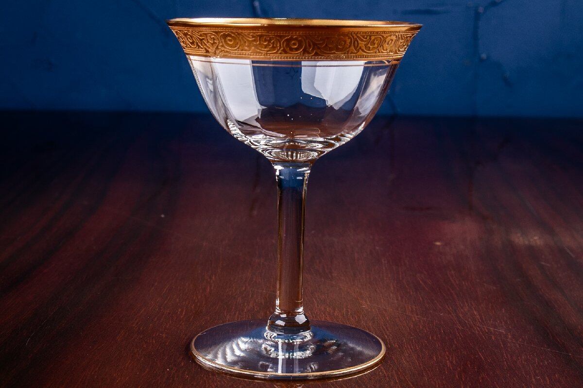 アンティーク フランス 金彩グラス クープグラス 高さ12.7cm ウランガラス 1客 E2110G