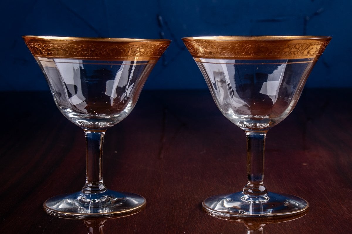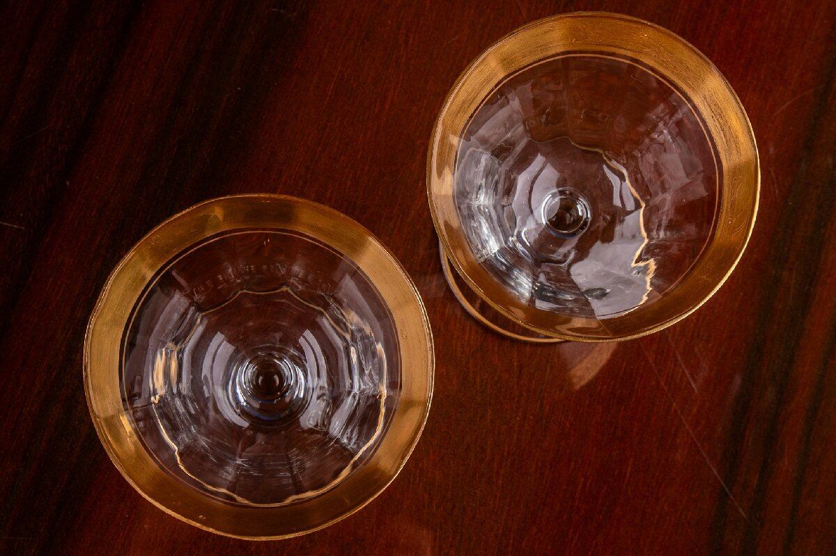 アンティーク フランス 金彩グラス クープグラス 2客 高さ10.7cm E2110D