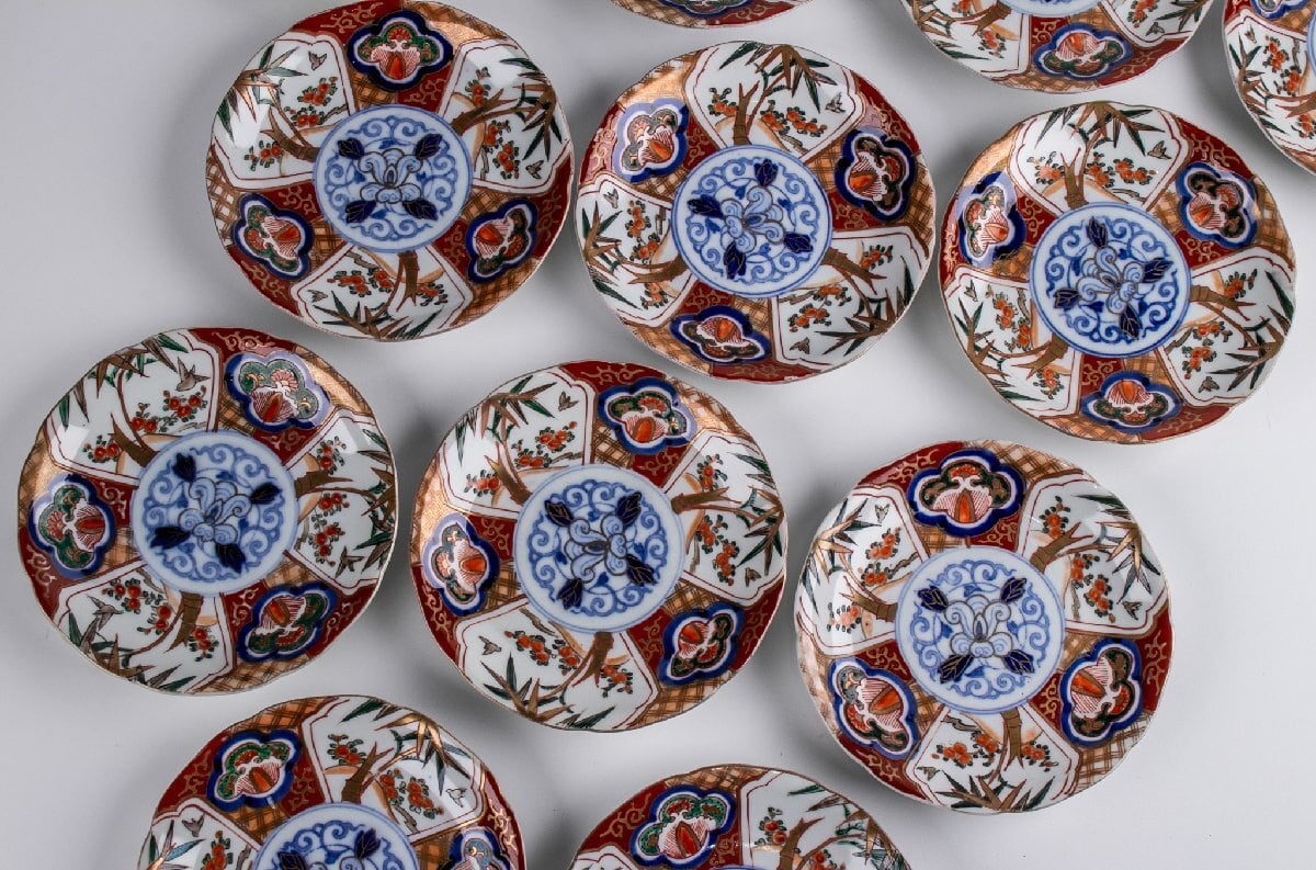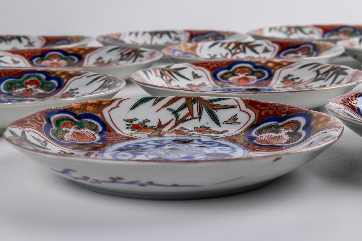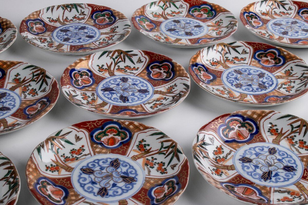 古伊万里 染錦花鳥文中皿 10客 明治時代 E2213 バラ売り可能です