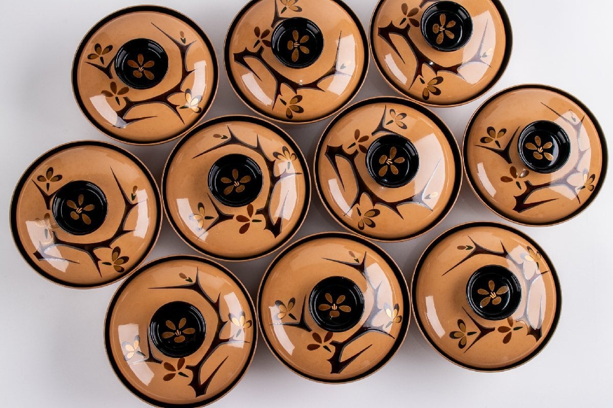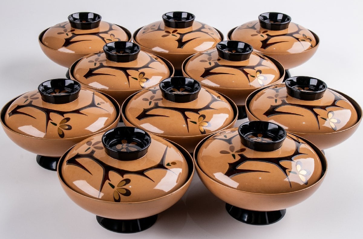 白漆花文蒔絵吸物椀 10客 E2216A バラ売り可能です