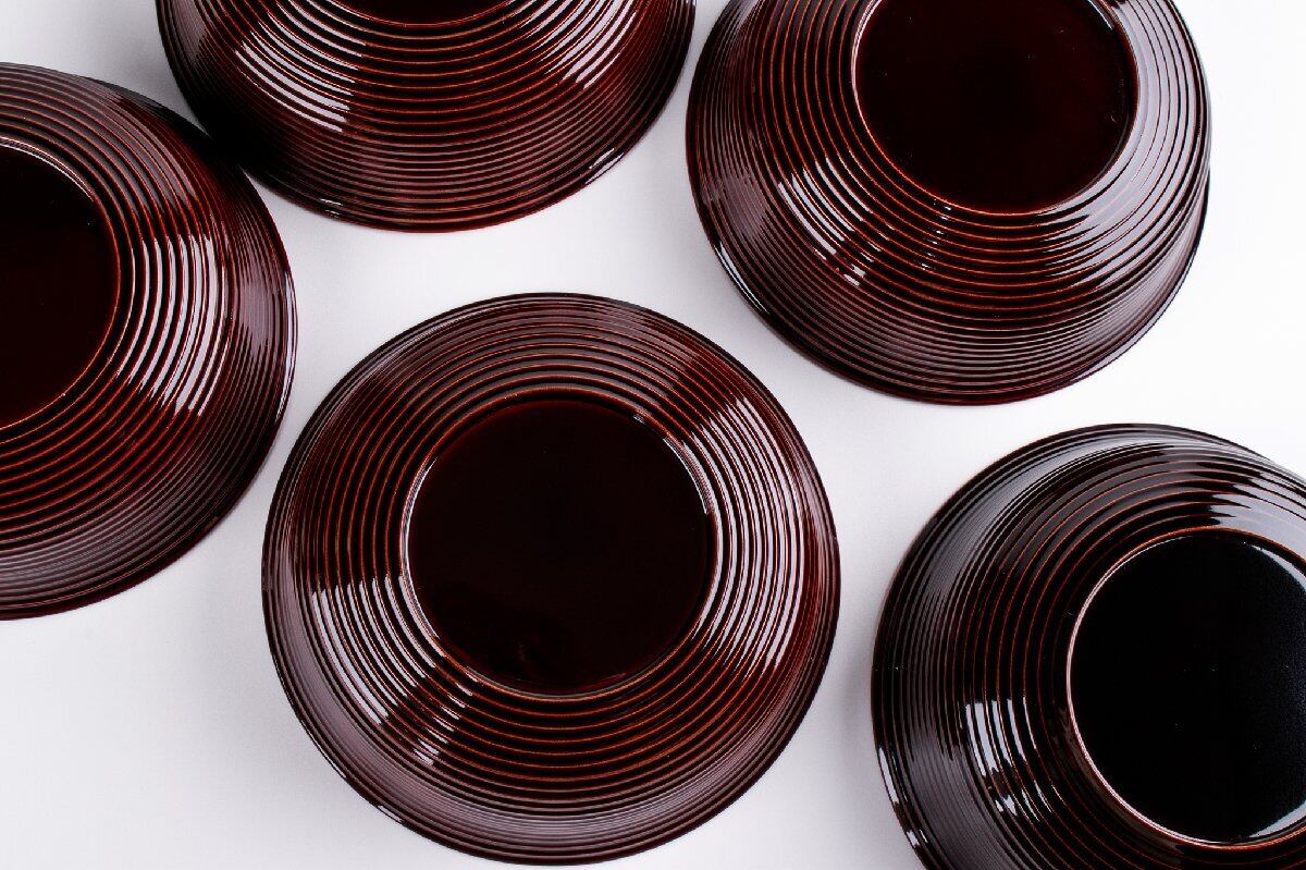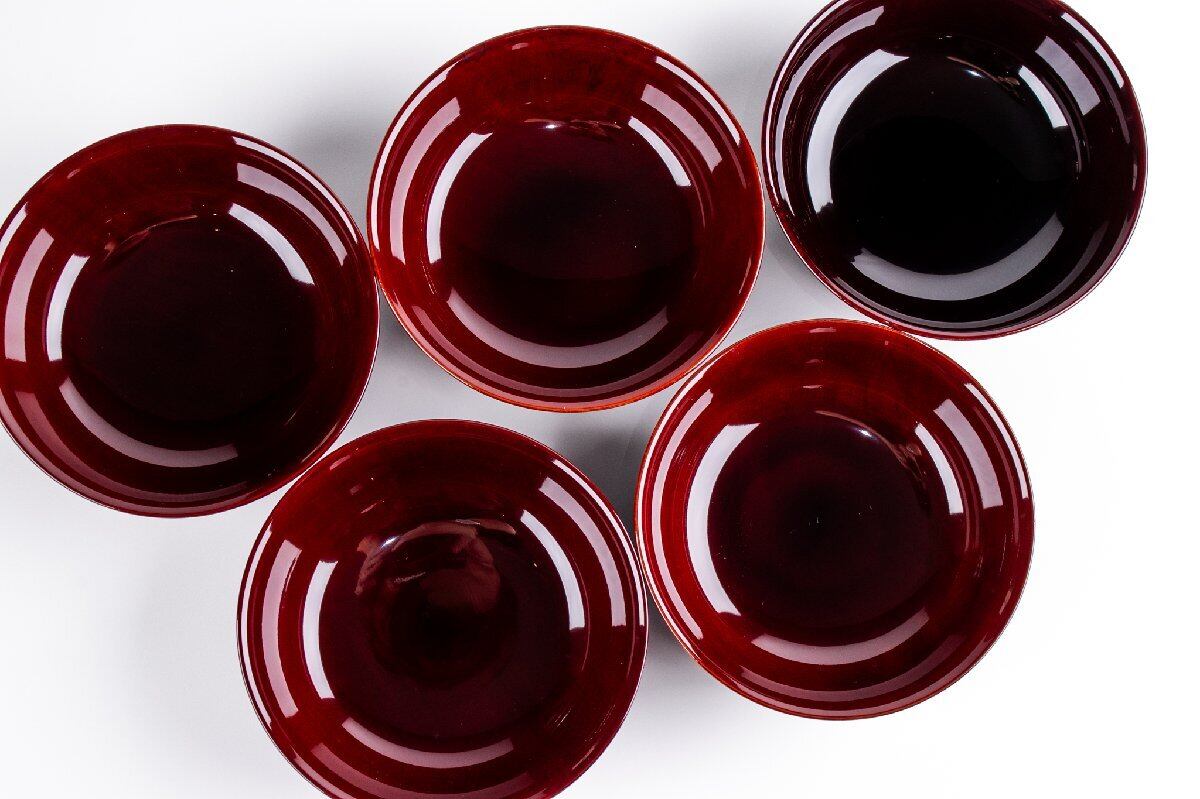 岡本漆専堂 溜塗呂久呂目鉢 五客 共箱 E2233