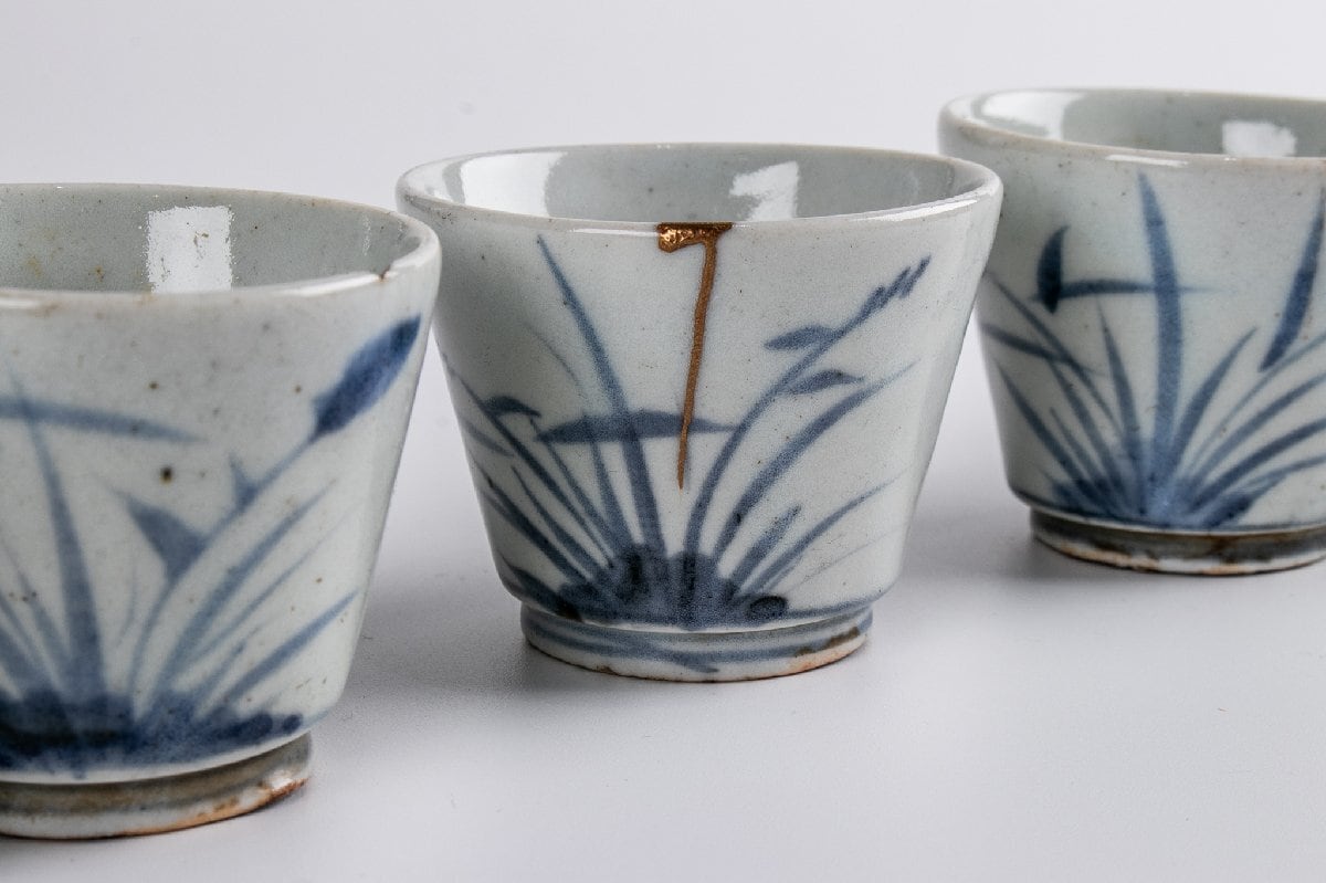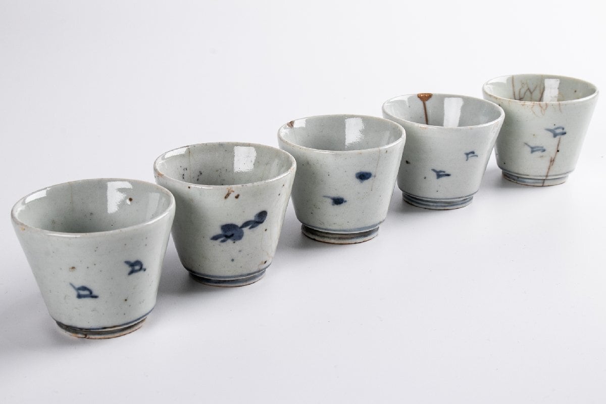 古伊万里 染付秋竹文猪口 五客 江戸後期 珍堂 秦秀雄 箱付 E2281