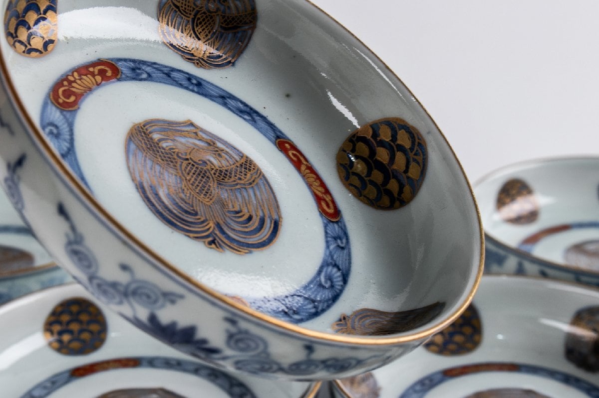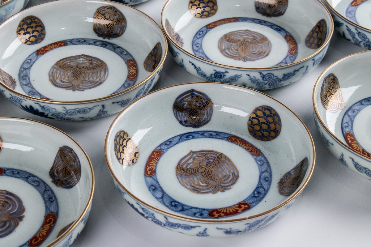 古伊万里 染錦鳳凰青海波丸文小皿 9客 明治時代 E2260A バラ売り可能です