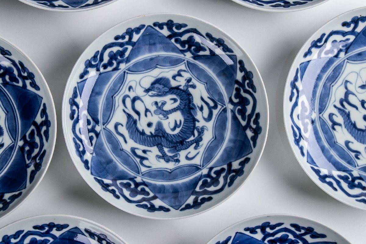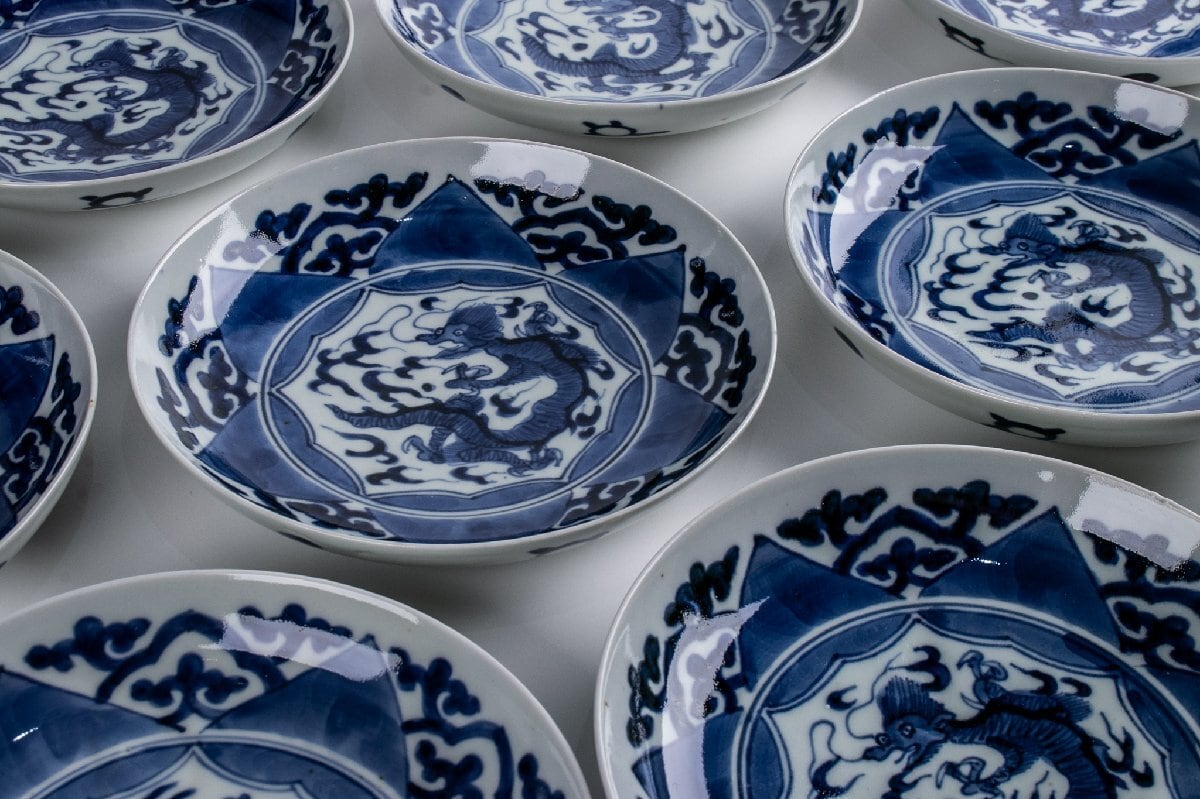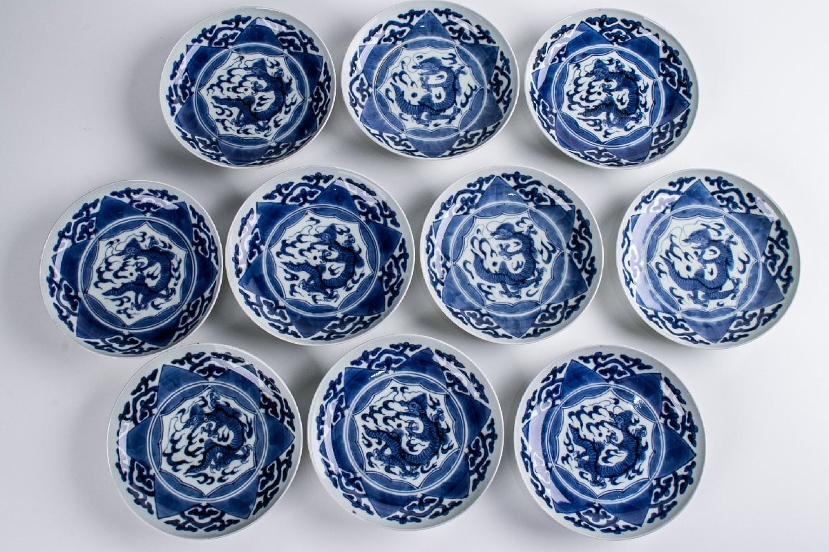 古伊万里 染付雲龍花弁文中皿 10客 江戸後期 E2259A バラ売り可能です